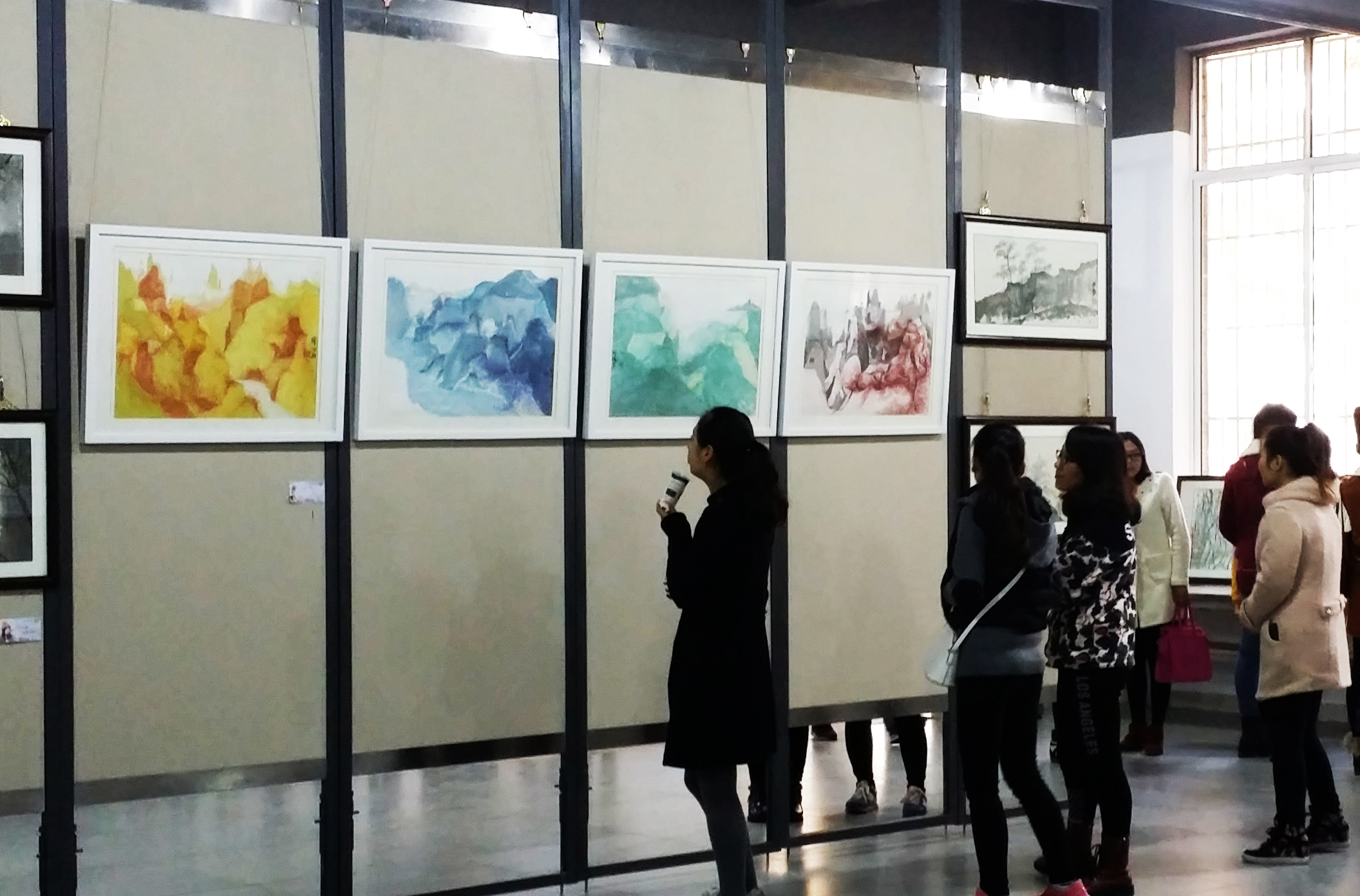 此次画展引得过往师生的驻足观赏,既丰富了同学们的业余生活,也激励着全体同学努力学习专业知识,提高专业素养及综合素质。