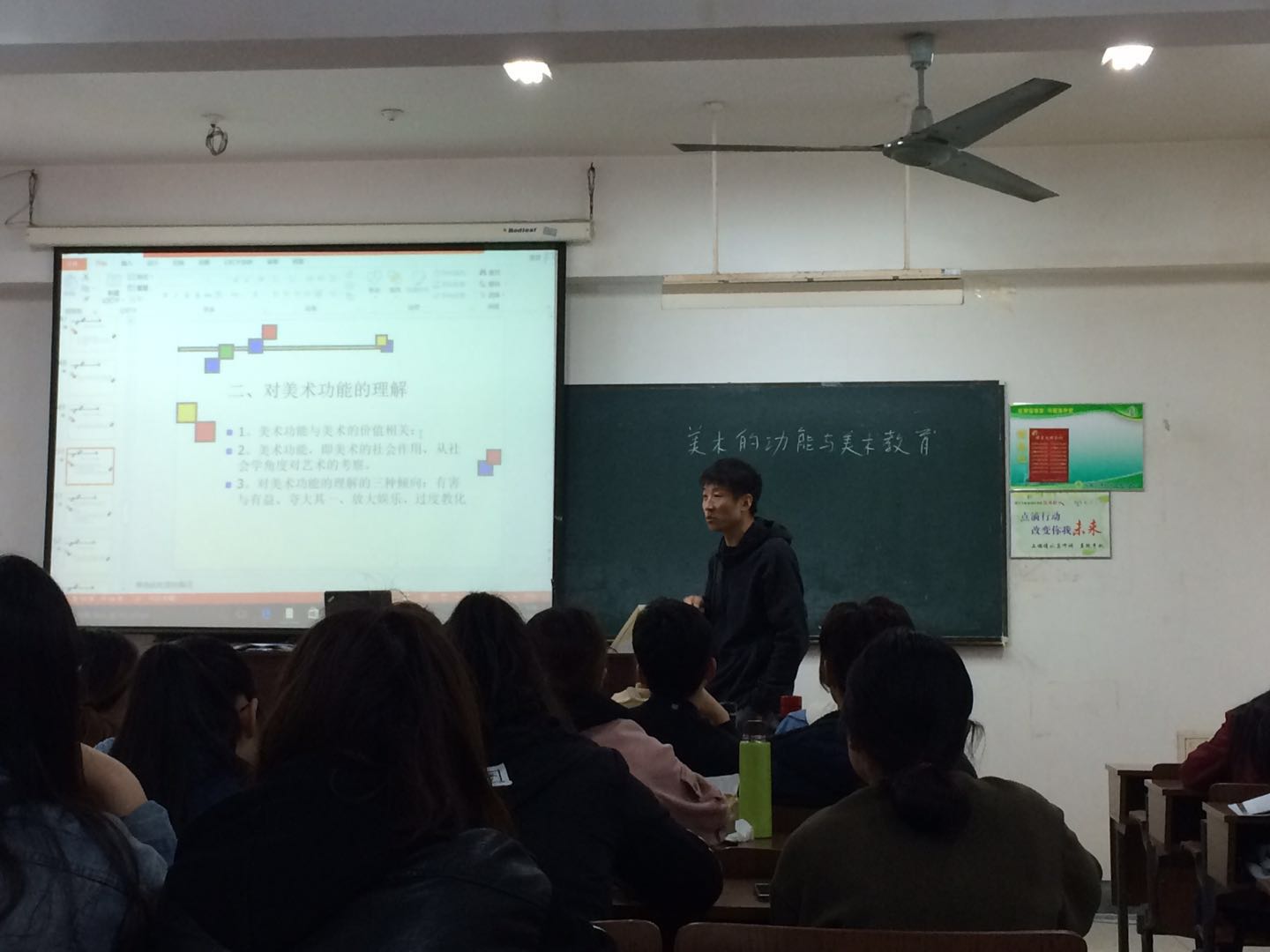 赵宝珊老师从对美术功能的理解展开课堂,将学生分为小组讨论,并让学生展示讨论成果。之后又以案例分析法解析美术的功能,赵老师能够充分利用多种教学手段以及多媒体,图文结合,讲练结合,将互动性渗透到各个教学环节中,使整堂课脉络清晰,丰富多样。