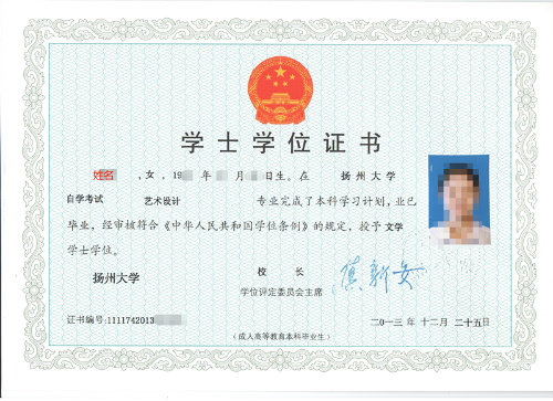 学制两年,修完规定的课程且考试合格,发给江苏省高等教育自学考试委员会和扬州大学联合盖章的本科毕业文凭,并进行电子注册,国家承认其学历。符合学位授予条件的,可申请学士学位,由扬州大学学位委员会评审通过后,发给学士学位证书。