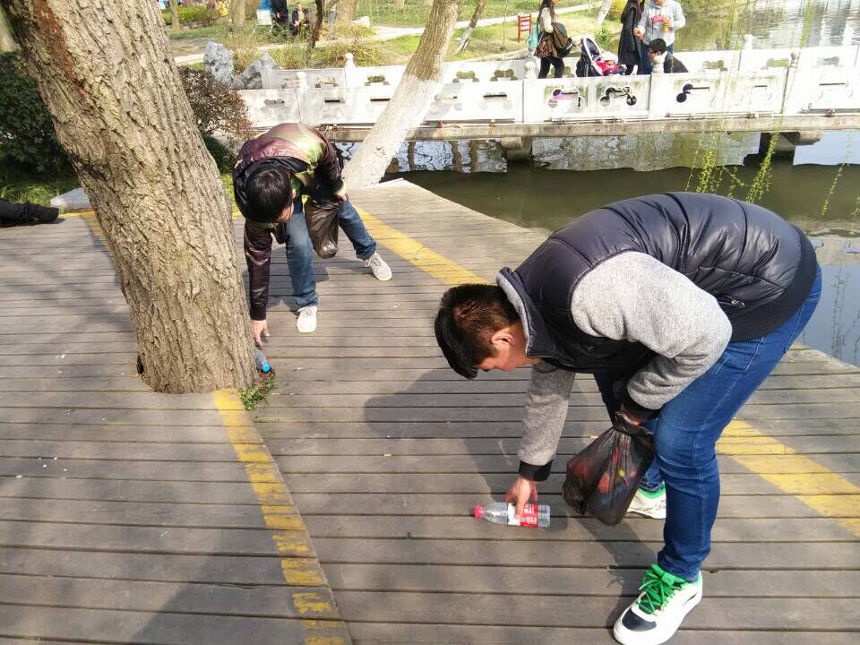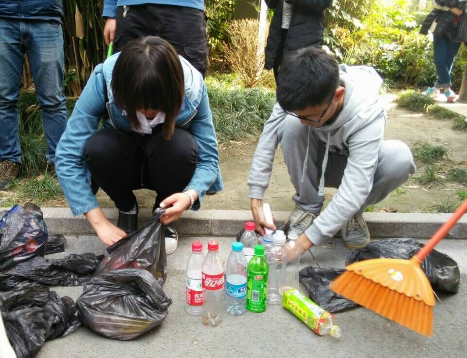 在经过班团一系列策划,制定行动以后,3月22日,社联青协成员及美术1401的全体同学来到扬州市荷花池公园准备着手进行。首先大家开始打扫公园,对公园内的废弃物进行收理,并分类回收。在亲身体验了打扫以后,大家已经对公共地区的环保有了初步的意识。接着,在班委的带领下,同学们进行了对公园内群众的采访调查。调查发现大多数群众了解可回收与不可回收的区别,但是却存在了很多垃圾分类的误区。关于采访另外还存在问题,许多群众提出,即使知道垃圾分类,可却很少看到分类垃圾箱。这也警醒了同学们对于公共设施的关注。