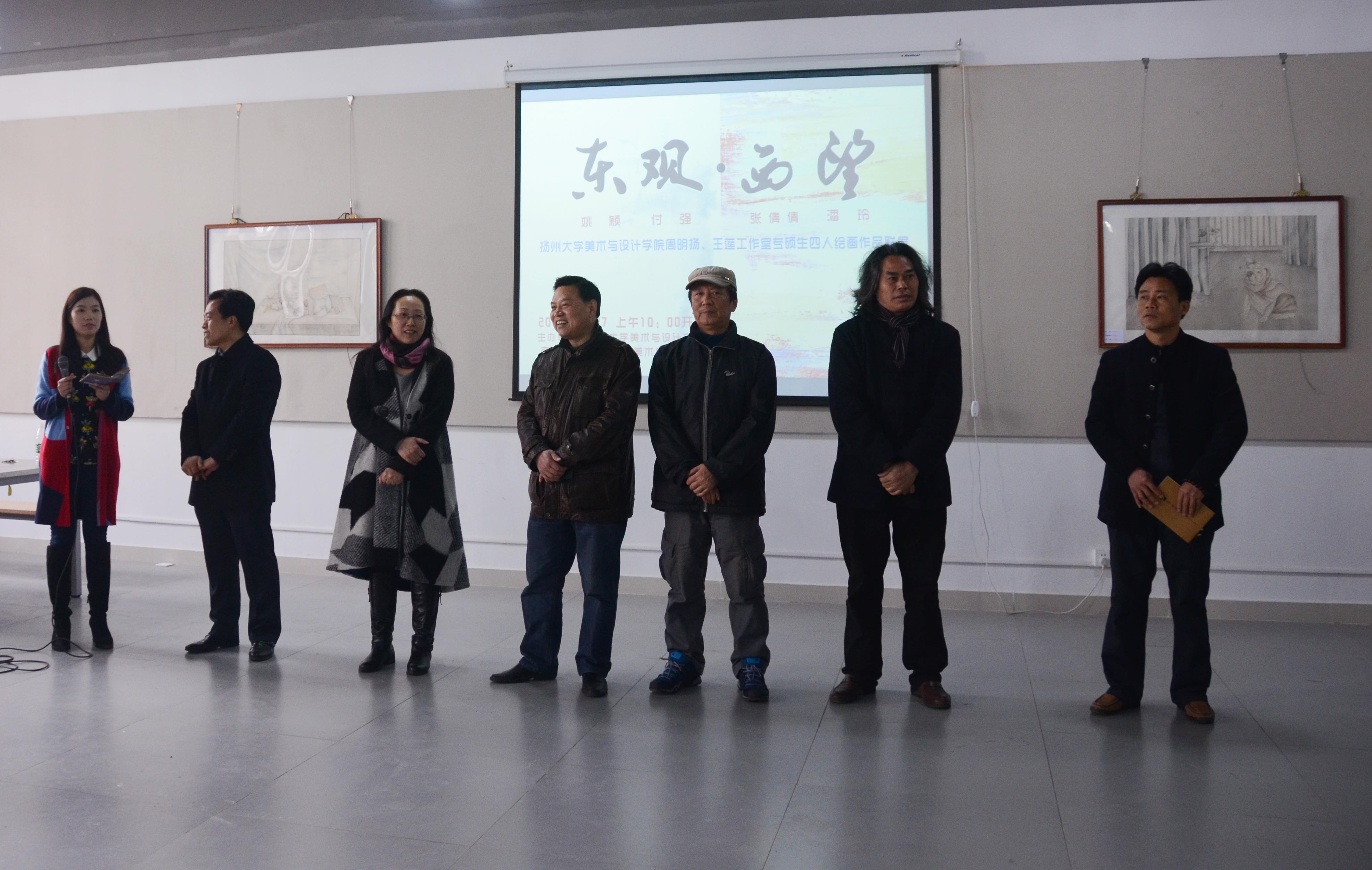 2015年3月27日,周明扬、王莲工作室专硕四人绘画联展《东观·西望》在我院展览厅成功开幕。出席本次画展的有院党委副书记陆江峰、副院长李玫、扬州市美协常务副主席薛小勤、扬州广陵区美术家协会主席中国画研究院副院长刘玉海和中国在线艺术网总经理徐顺才等领导嘉宾,华干林调研员宣布画展开幕。