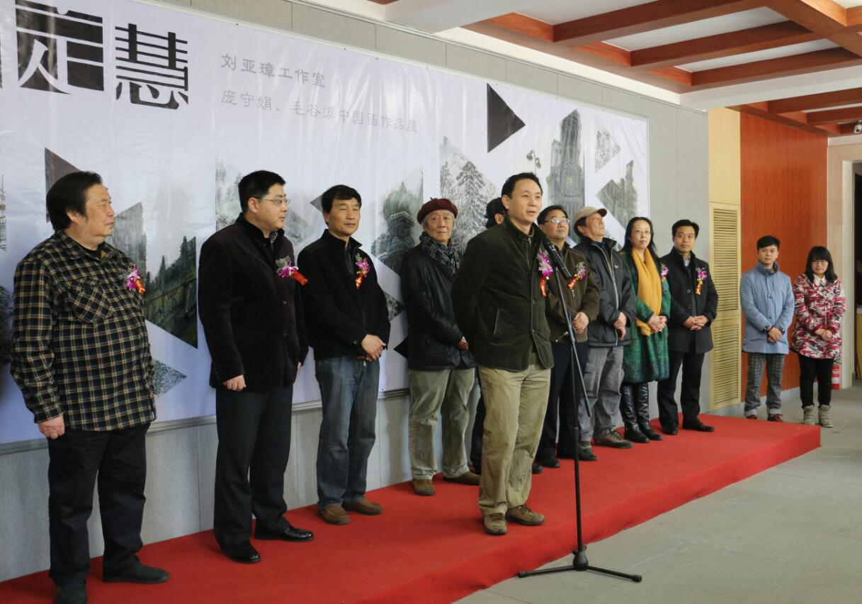 首先,两位同学的导师刘亚璋教授简单介绍了本次展览的筹备情况,并对本次画展给予厚望。接着,扬州文联刘俊主席,扬州美术家协会薛小勤主席和扬州大学美术与设计学院李玫副院长分别致辞,他们在对两位同学的作品给予高度评价的同时,也鼓励两位同学要学无止境,更上一层楼。各位领导和画家的发言结束后,毛谷溪同学向参展各位领导、嘉宾、同学致以真挚的问候与感谢。