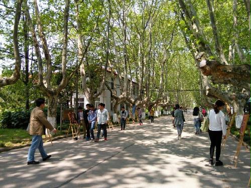 由梧桐树陪衬的漆画作品依次排列在道路两旁,顿时让扬大校园充满了艺术的气息。尤其是下课后,引来了众多师生的驻足,整个梧桐道显得异常的热闹与欢快。而参展作品的主人也十分热情的向来往的人宣传他们的作品以及漆画知识。来参观的人多对此啧啧称奇,一边赞赏一边感慨这种美的创作。