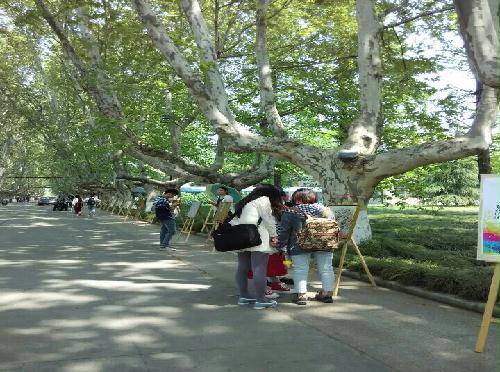 展出过程中,一幅幅优秀的作品与梧桐树斑驳的树影相得益彰,在展现出我院学生出众的专业技能的同时,更体现了校园生活的多姿多彩,引得许多行人纷纷驻足,仔细欣赏这些优秀的作品。面对行人的疑问,我院学生还积极为他们讲解答疑。