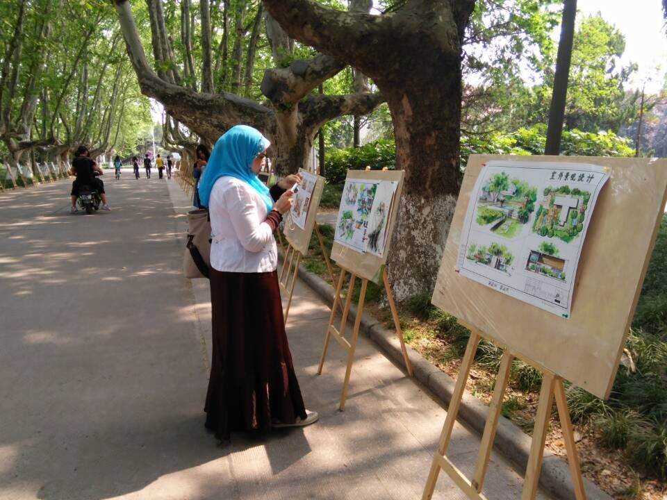 4月28日,我院在文汇路校区大礼堂前梧桐树林荫道举行了“美苑工坊”第一届设计展。展出的作品是我院环境设计专业大一至大三学生平时作业中优秀的作品,包括了漆画,手绘效果图和3D效果图等种类。