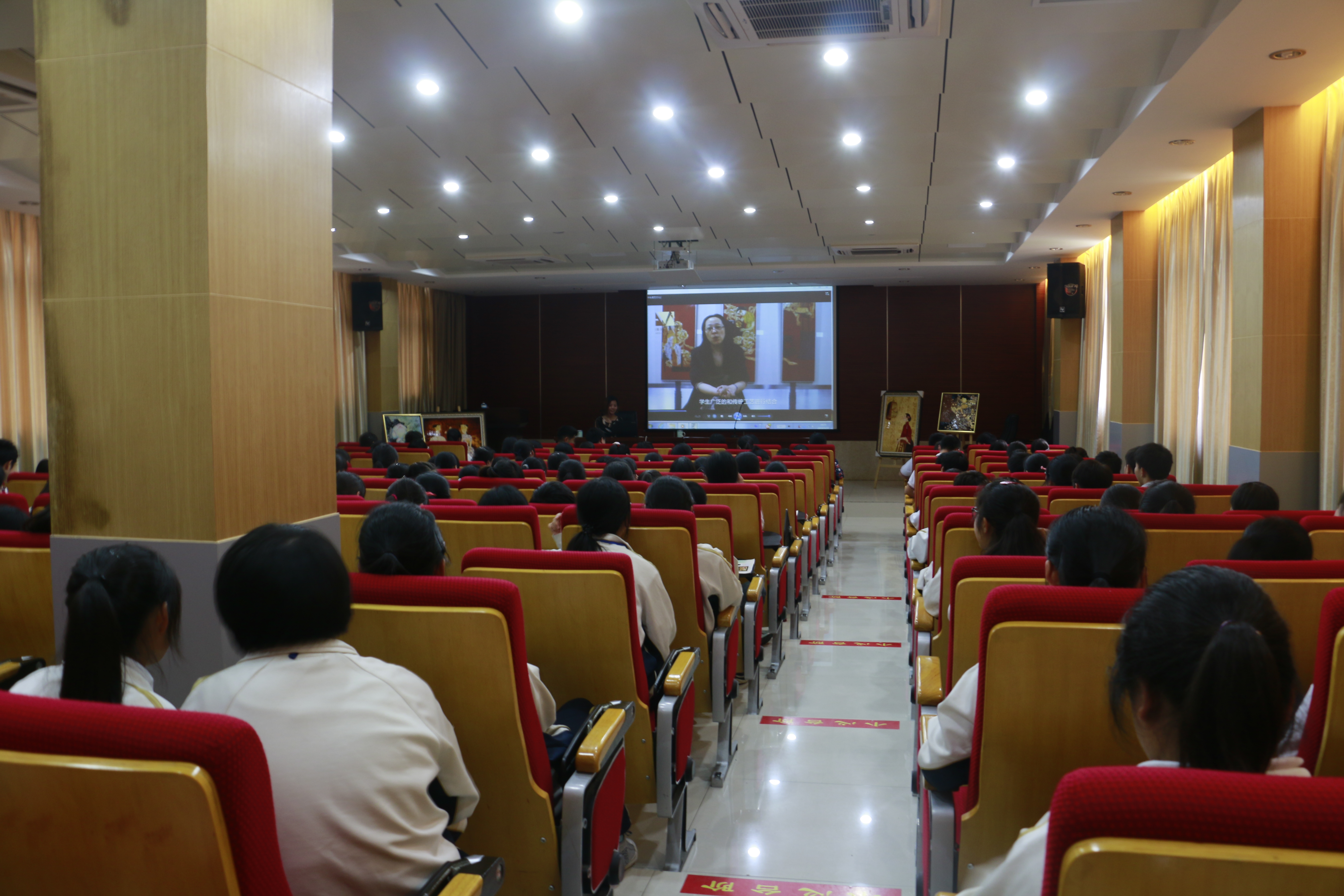 4点,我院漆协会长邢文妍于旅游商贸学校报告厅进行了与近百名学生的漆艺文化交流会。同学们首先认真观看了我院漆画的宣传片,然后邢会长为大家详细讲解了制作漆画的工艺与技法,同学们听得兴致勃勃,时不时传来热烈的掌声。最后,几位同学代表向邢会长提出自己的疑问并纷纷得到了满意的答复。