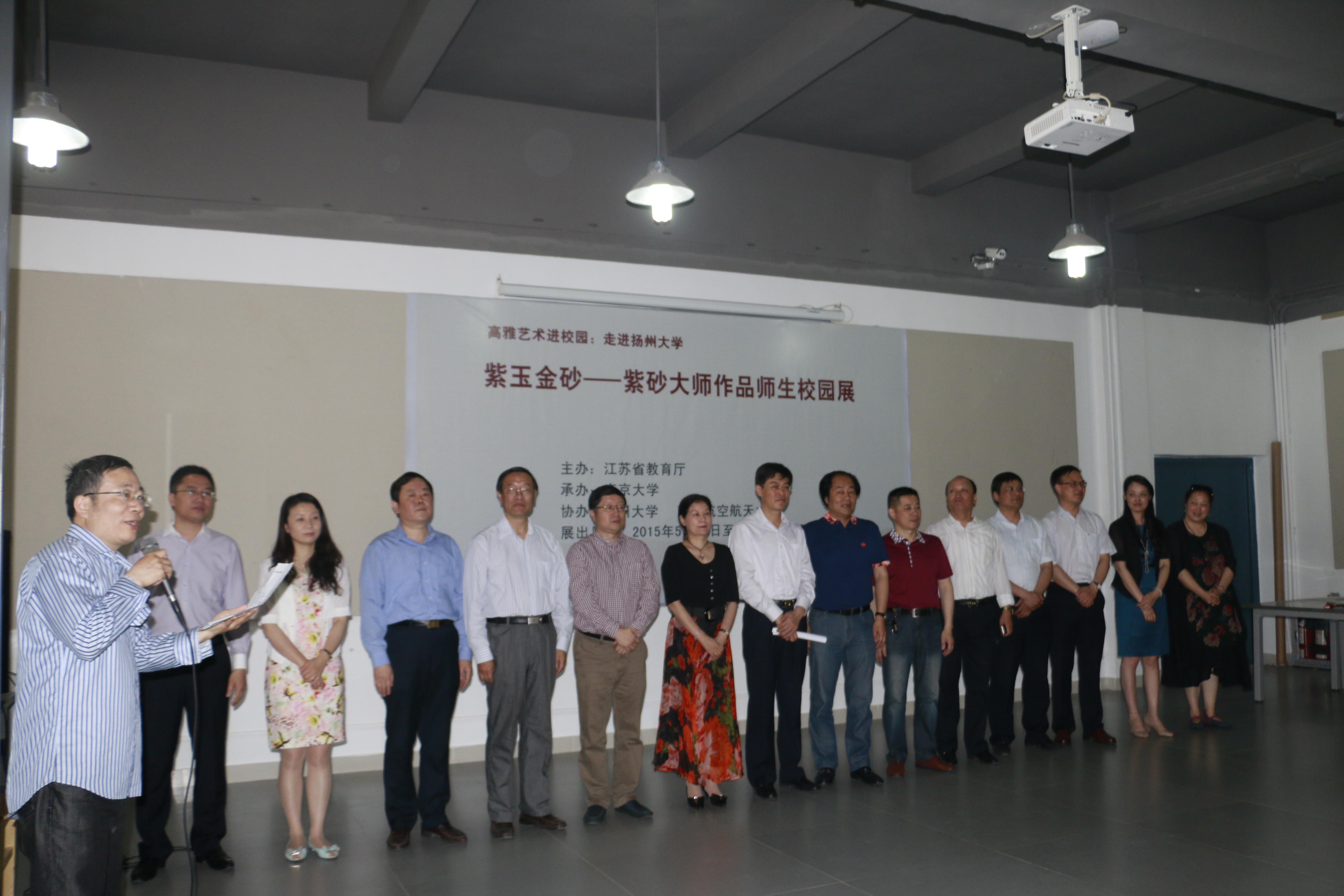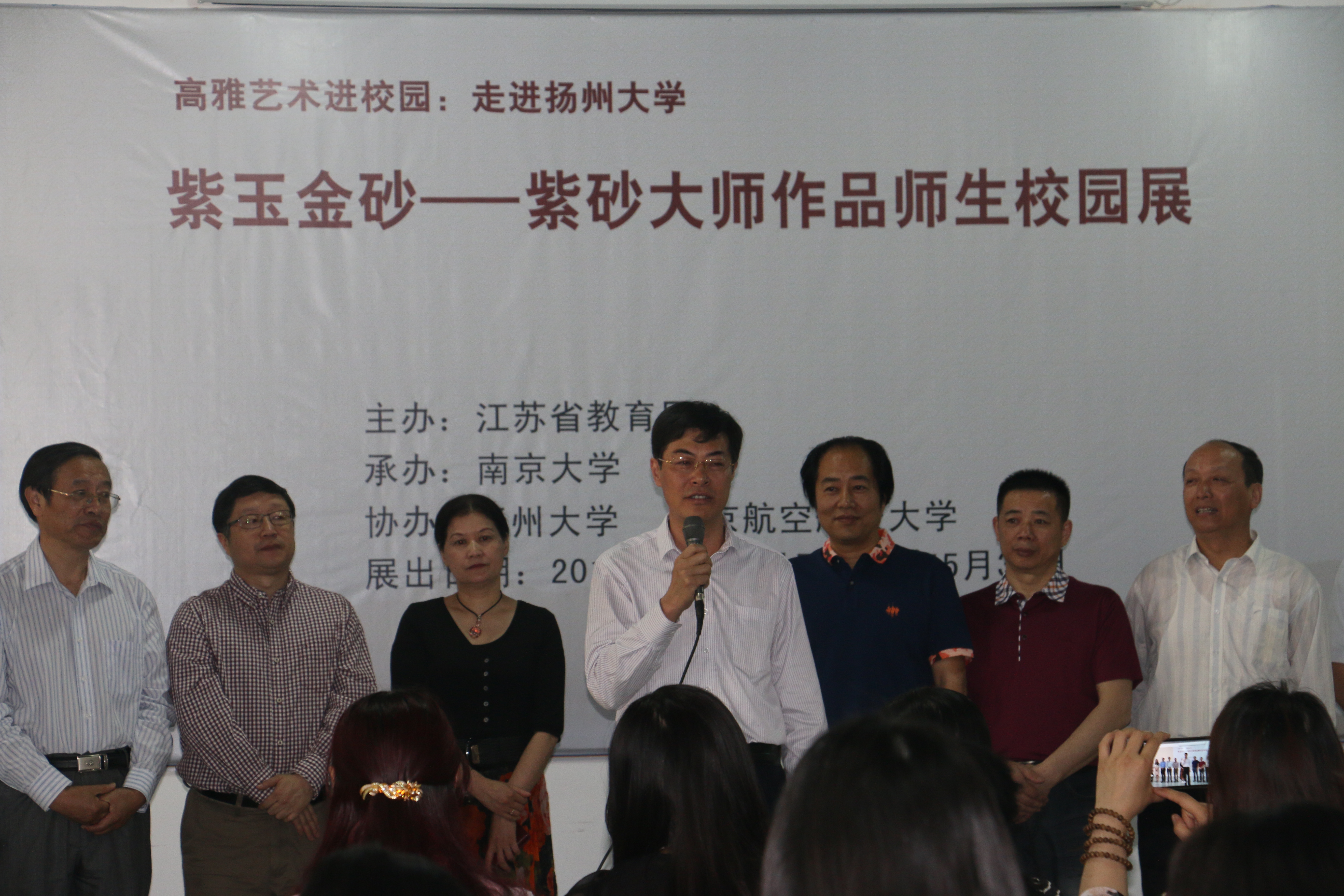 2015年5月24日,由江苏教育厅主办、南京大学承办、我校协办的高雅艺术进校园“紫玉金砂——紫砂大师作品校园展”在美术与设计学院展览中心隆重开幕。校党委副书记、副校长叶柏森出席活动并致辞。