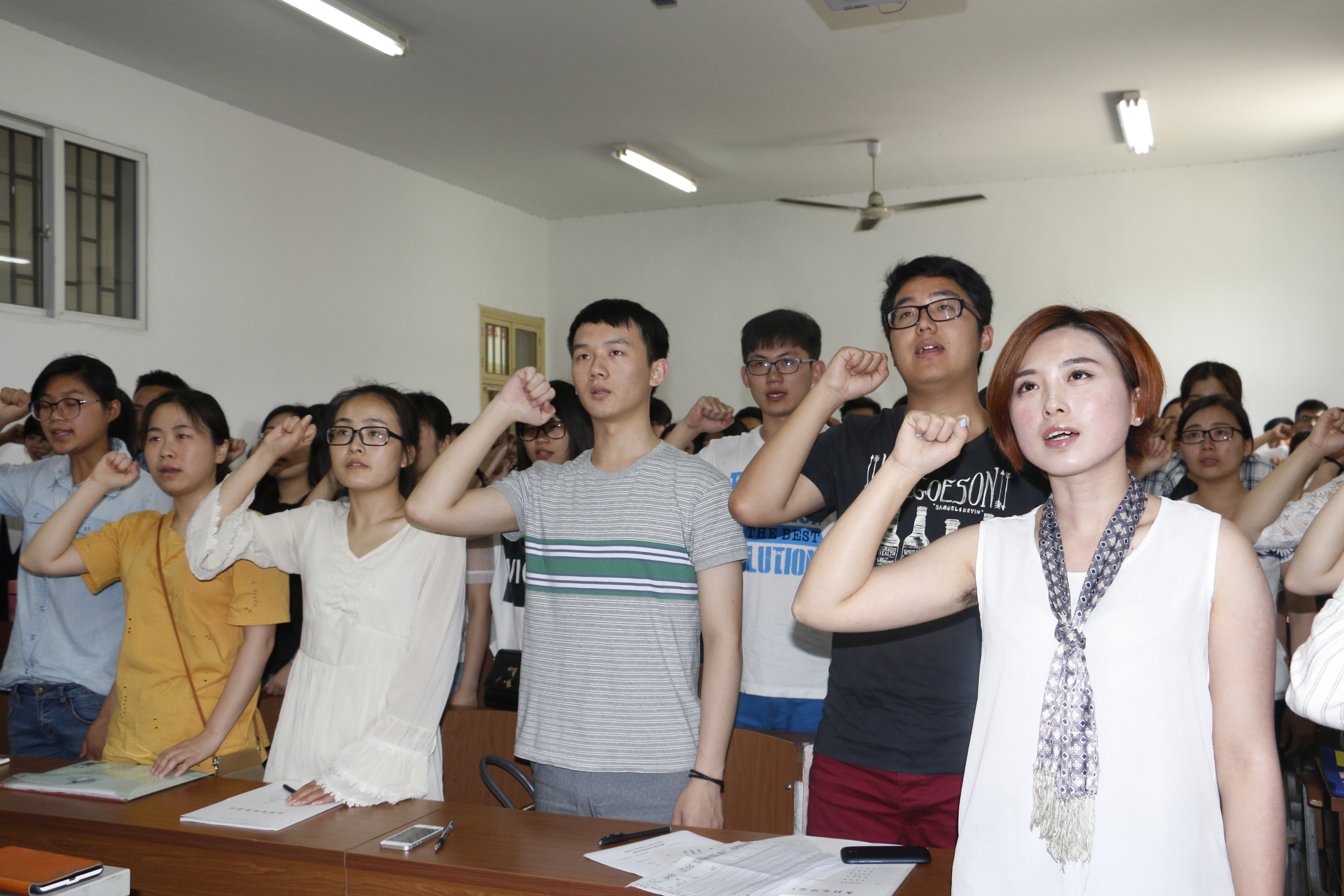 中午12点半,会议正式开始。首先,主持人介绍了出席人员以及每一位发展党员和到期转正党员的基本情况;接着,由预备党员进行答辩并宣誓,老党员重温宣誓内容;最后,预备党员们和党员们进行了“四进四信”理论学习。同学们认真观看了《作风建设在路上》第一集“承诺与期待”,更深层次的学习和了解了《八项规定》的相关内容以及我国反腐败、反“四风”的形势和成效,同时对作为一名青年学生,如何在走上工作岗位前形成正确的廉政观的问题进行了深刻思考。党支部书记鲁烨老师在最后的发言中首先祝贺这次被确立发展党员的积极分子和确认转正的预备党员们政治面貌的改变,强调作为一名党员或者预备党员,我们要更严格的要求自己,在生活中时刻注意自己的言行,起到先锋模范作用。