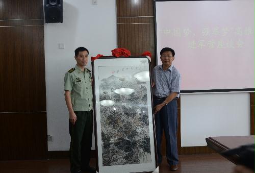此次社会实践活动以“践行‘八字真经’,投身‘四个全面’,高雅艺术进军营”为主题,采用艺术作品展示,座谈会以及文艺汇演等活动形式。其主要内容包括:1.参观考察、交流学习。书画作品展示;2.军营座谈会;3.军校双方座谈会;4.文艺演出。实践团队由我院共50名同学组成。