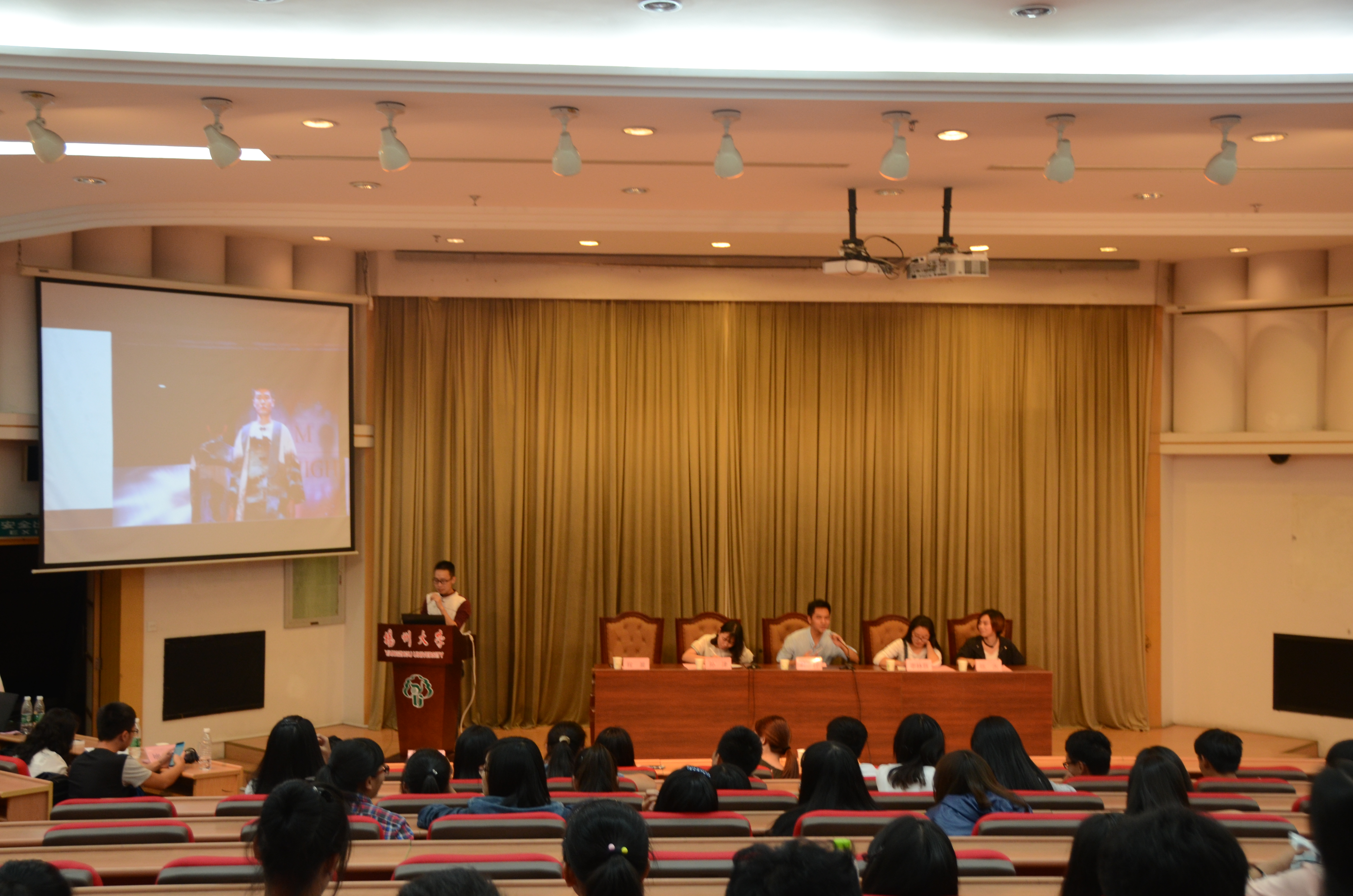 晚6点30,招新大会正式开始。本次会议由院学生兼职团委副书记叶柠主持。共分为三项议程:1.由四会主席、主任的进行自我介绍及部门简介;2.由各部门部长采取PPT或视频形式进行招新演讲;3.总结四会面试要求,通知面试时间和地点。