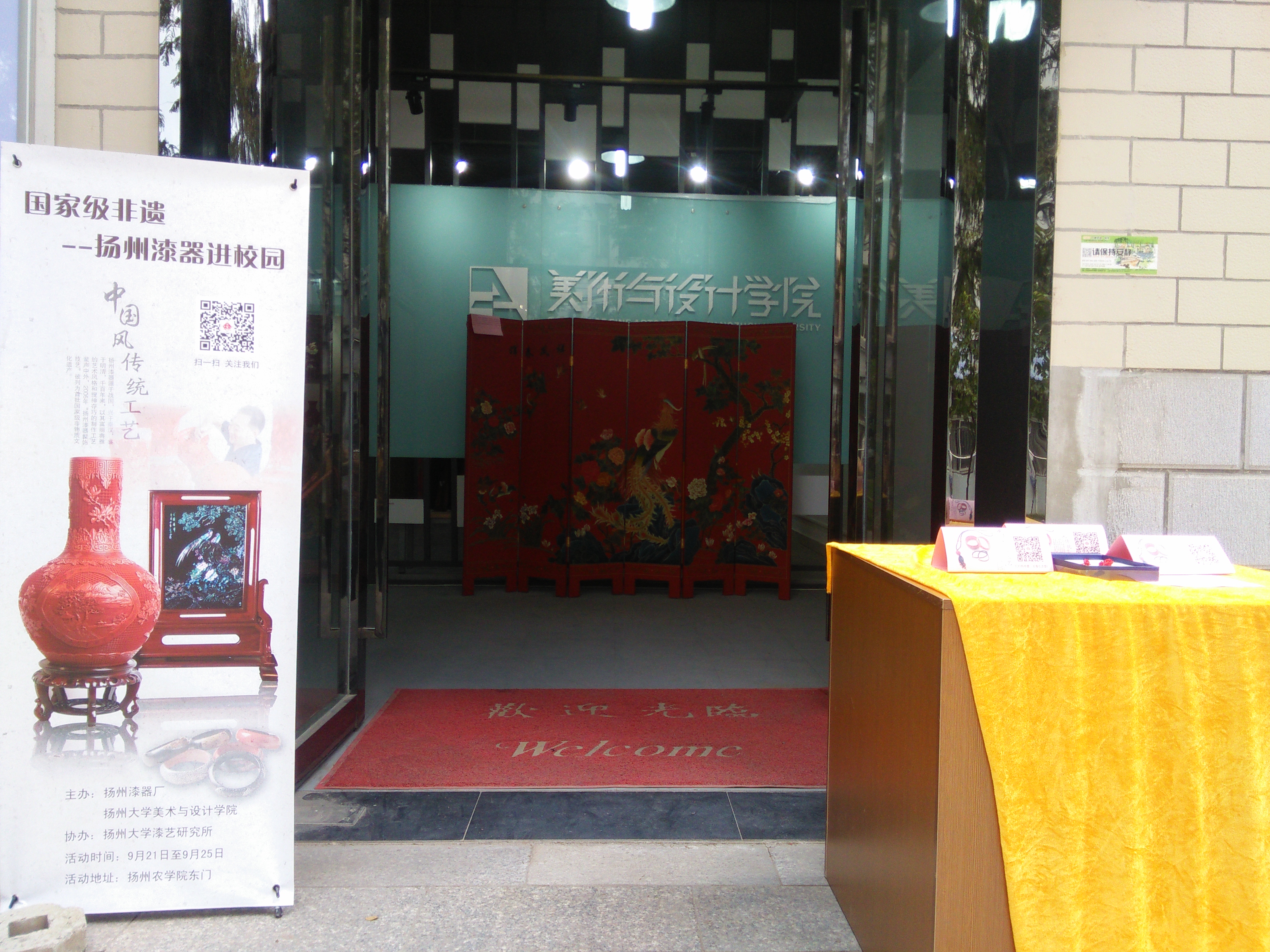 9月21至25日,由扬州漆器厂,扬州大学美术与设计学院联合主办的国家级非遗扬州漆器进校园活动在扬州大学文汇路校区东大门美院展厅举办。