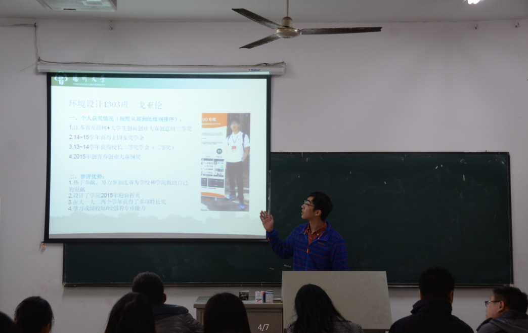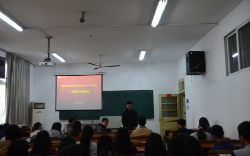 中午十二点,在团委212教室,我院召开了2014-2015三好优干评审会,由团委老师鲁烨,李响,杨千里三位老师作为评审,院党务主任沈华岚老师全程监督,候选人依次上台答辩。答辩结束后,四位老师与学生干部叶柠和陈杰同学根据同学申请、班主任审核和学院答辩、评审最终确定了20名同学获得校三好优干申报资格。
