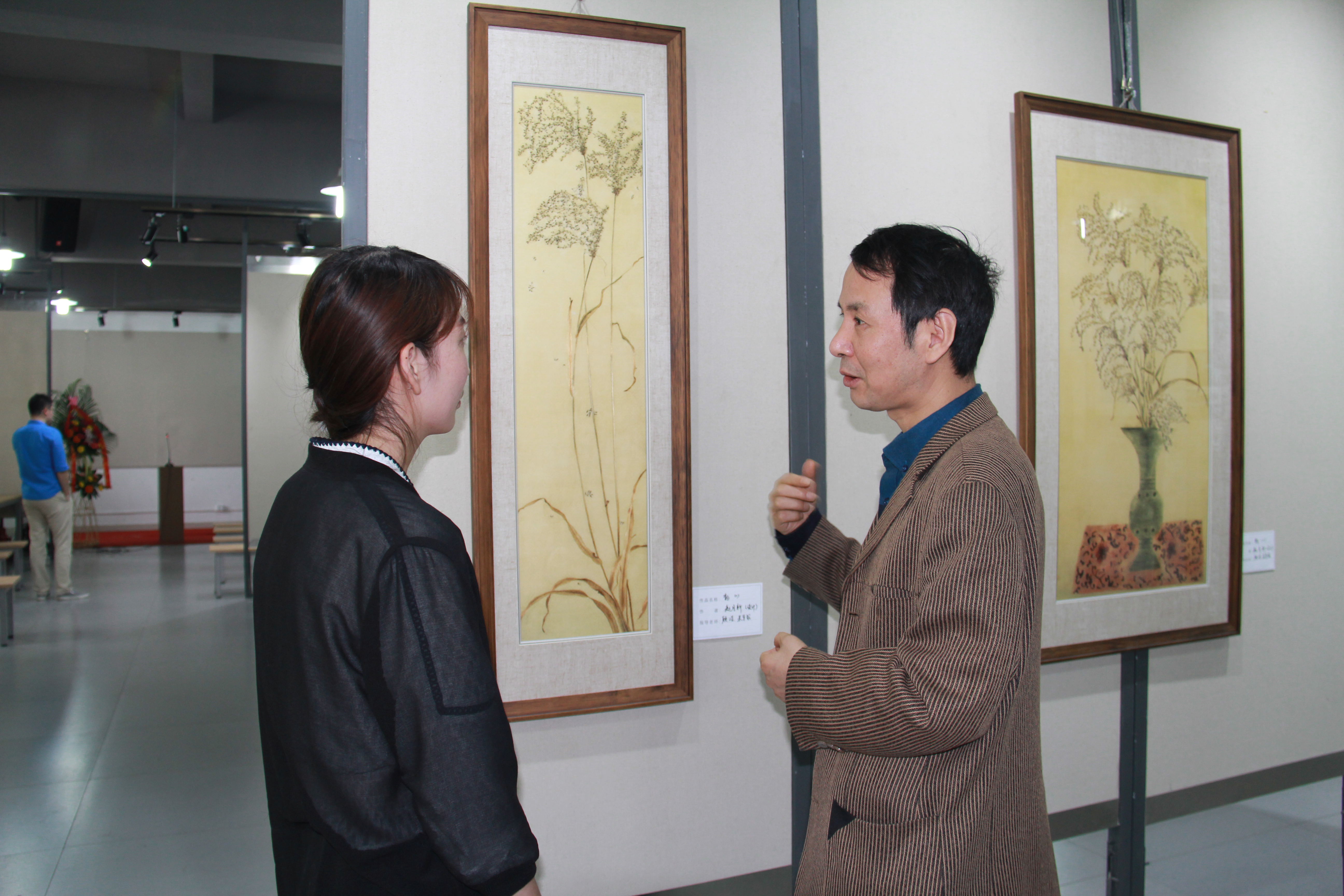 开幕式由扬州大学美术与设计学院党委书记周建兵老师,江苏省非物质文化遗产专家管世俊老师、江苏省工艺美术大师朱军成先生、扬州大学美术与设计学院副院长李玫老师分别进行的亲切祝词拉开序幕。