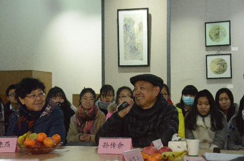 同学们各个专心致志,掌声阵阵,同学们对老年书画组的老师们尊崇、敬佩,老师们也同样对同学们亲切和蔼,使这场仪式更加温馨。这场仪式不仅使同学们收获颇丰,更值得庆幸的是,书画组与美院相约书画展览,美院的同学们又有了一次学习和体味中国书画韵味的机会。祝贺此次仪式圆满成功。