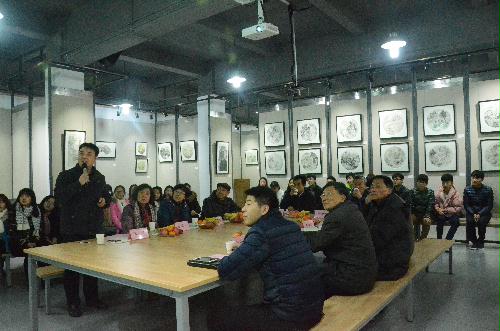 2016年12月1日,美术与设计学院携手扬州书画协会、扬大文汇路校区老年书画组,在美术与设计学院东门展厅与美术1601班,展开了深入人心的结对共建仪式。出席的各位领导和来宾分别是:扬州书画协会孙传余秘书长、美术与设计学院党委副书记陆江峰老师、扬大关心下一代工作委员会办公室主任刘芳云老师、文汇路校区老年书画组组长殷珍荣老师及组员陈文俊、张鸿仙、习晓燕、朱凤林各位老师,及我院团委副主记王坤、团委老师杨千里。他们的精彩讲话,使美术1601班的同学们受益匪浅。
