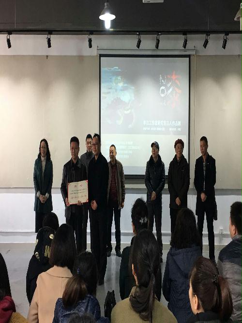 首先是由我院副院长,研究生导师李玫老师为整个作品展致词。然后是研究生院吉丹如副院长颁发证书,赞许了大家的努力,由老师及学生依次发言展示了此次作品展。我院院长贺万里致词并宣布画展开幕。