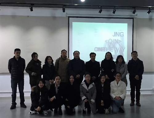 此次画展,参展的作品主要分为漆画,丙烯画和相关综合材料。参展作者分别是14届研究生郭靖和金千同学,和15届研究生张玉勤。每一幅作品都寄托了三位同学对艺术的理解,以及对自身思想艺术的诠释,学生代表郭靖同学这样说到,感谢扬州大学给了自己展示自我的舞台,给了自己一片自由翱翔的天空。朱丹辉老师也给予了极大的赞赏,并希望他们能够再接再厉更上一层楼。副院长李玫老师更是指出“在路上”这个主题的含义,也希望研究生学子们能不停止脚步,在艺术这条路上越走越远。