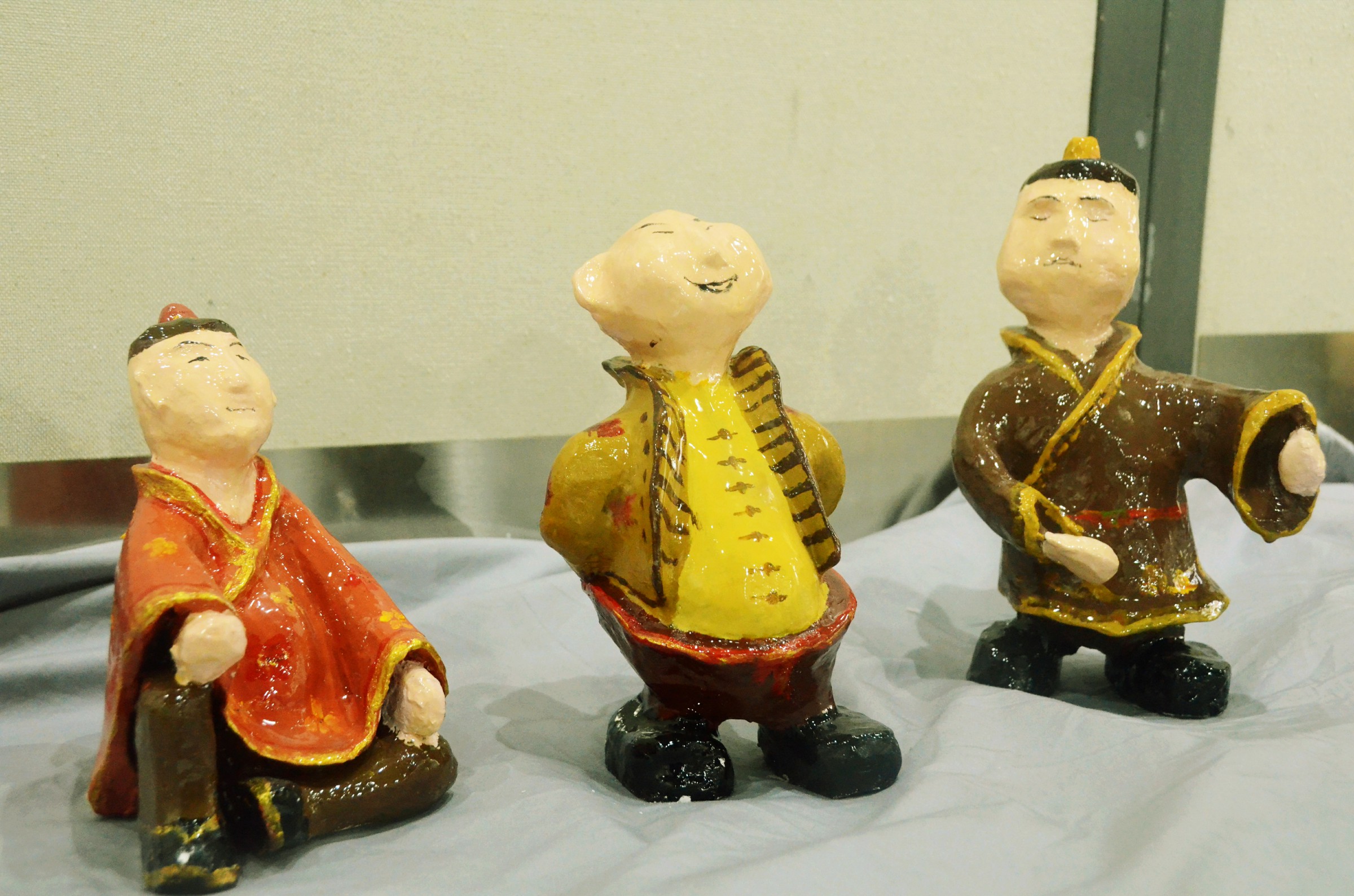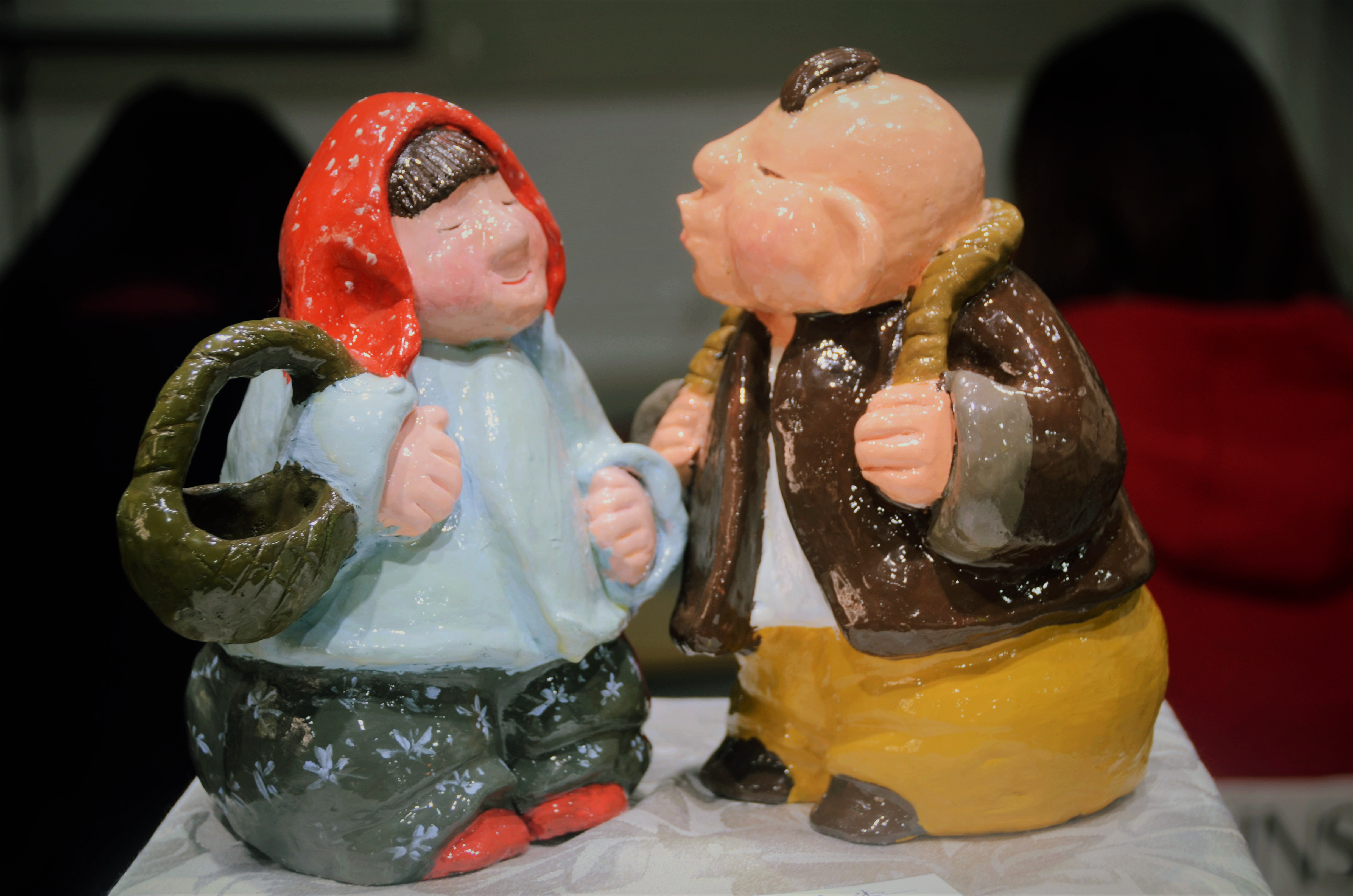 在顾浩老师的指导下,本科生和研究生共展出了百余件作品,整场展览充满了浓郁的民族气息。作品色彩缤纷,形式新颖,有寓意吉祥福禄的小象、有描绘朴实民情的劳动人民、有各式各样的卡通人物。每个泥塑表情各样,生动活泼,炫丽缤纷,得到了同学和老师们的一致好评。
