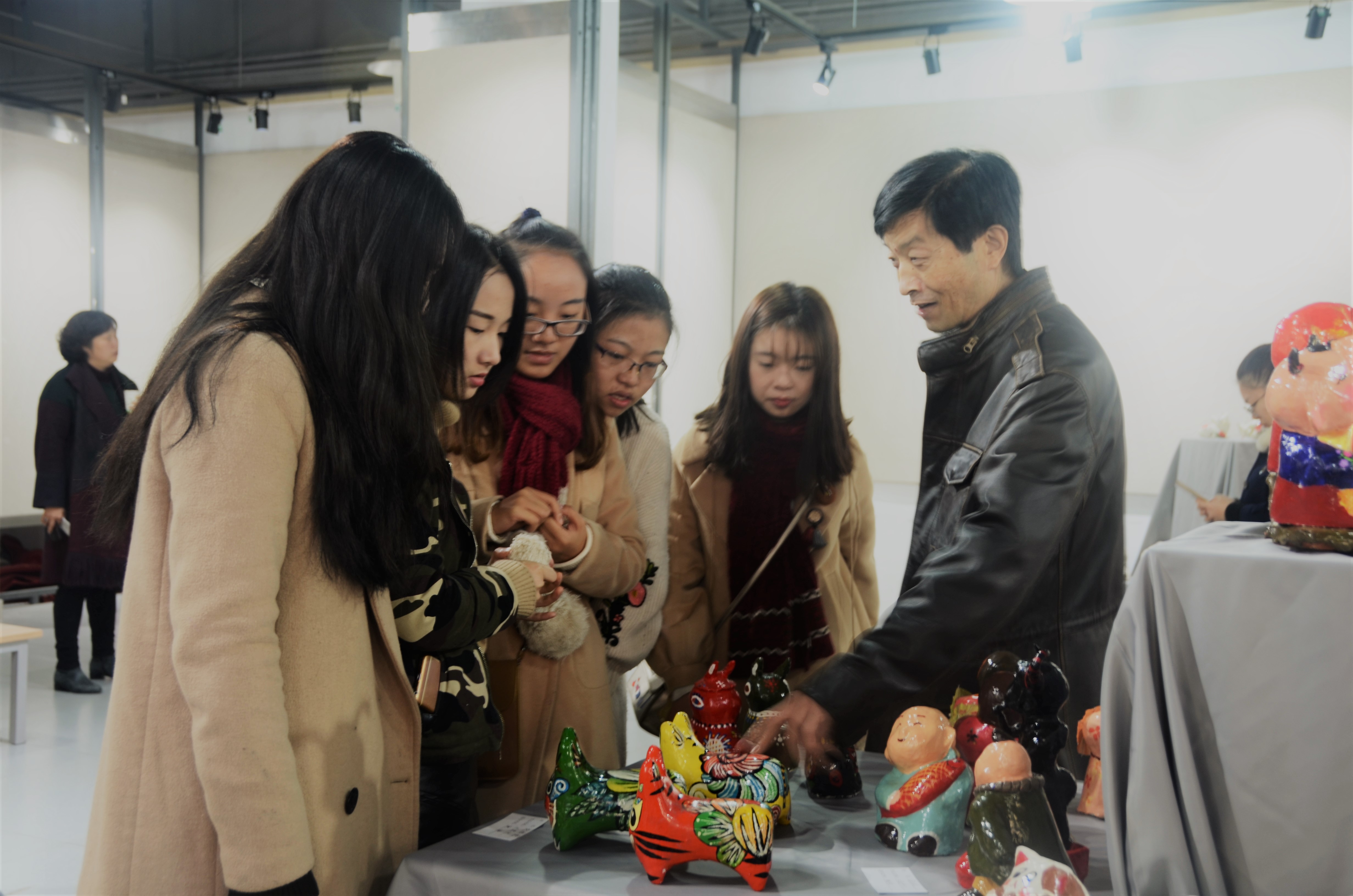 金风玉露的11月,美术与设计学院美研15级研究生和美术1601班在校区东门展厅联合举办了民间泥塑作品展。院党委书记马雷老师、副院长陈欣老师、院教务章建文老师、美术系教授吴越滨老师以及院团委老师等出席开幕式。