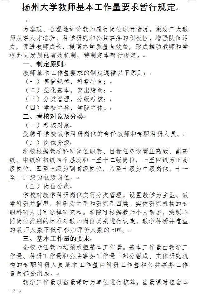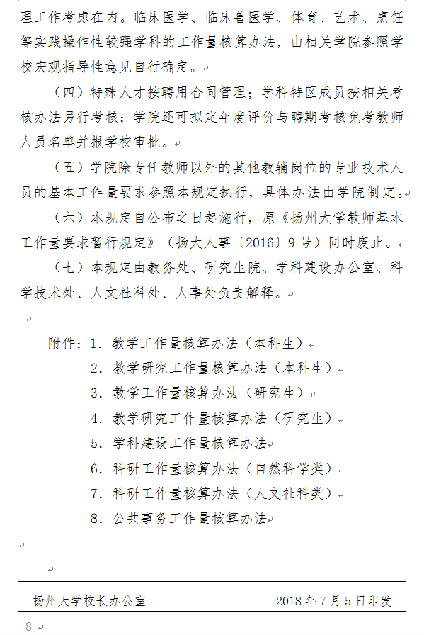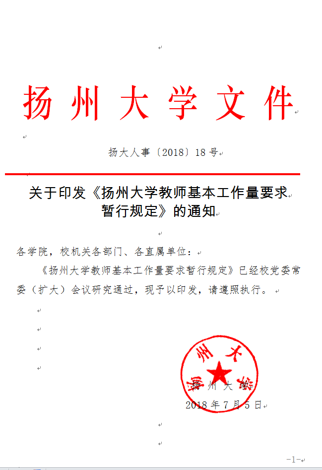 关于印发《扬州大学教师基本工作量要求暂行规定》的通知
