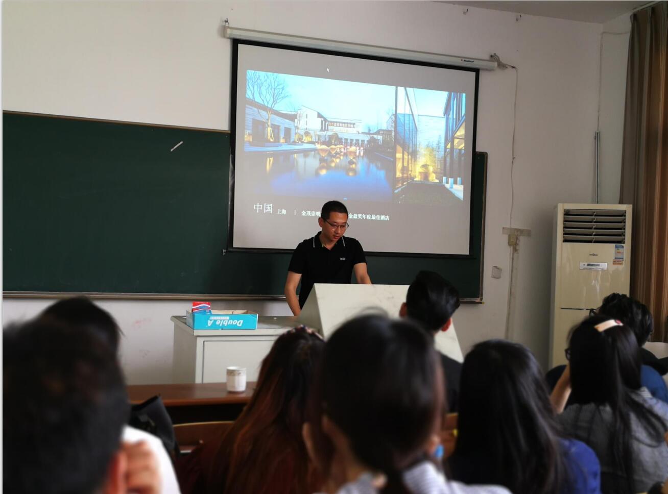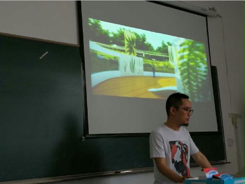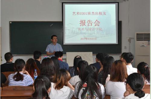 5月21日上午,艺术0301班级杰出校友刘建军、陈伟、王永生、翟勇、冀春燕为学院2014、2015级环设(室外方向)近60名在校学生作报告会。