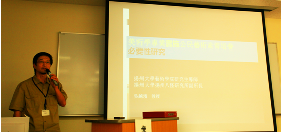 8月19日,在日本国立茨城大学的学术报告厅里,一场简约而庄重的“首届亚洲艺术教育国际学术论坛报告会”在此拉开了帷幕。中方应邀出席20余人,大会发言有8人,扬大艺术学院吴越滨教授作为大会主要发言人,被安排在第二个发言,他报告的题目是《美术学专业实施公民艺术素养培养方案的必要性》,在近一小时的报告过程中,吴越滨教授以简明生动、观点鲜明、论证严谨、结论新颖的学术视角,为与会者进行了一场高水准的精彩报告,赢得了全场的掌声和好评,也为扬州大学赢得了良好的国际声誉,产生了广泛的学术影响。
