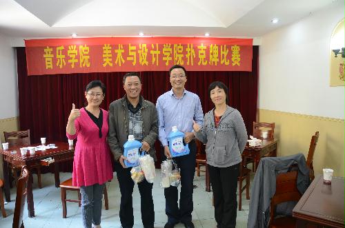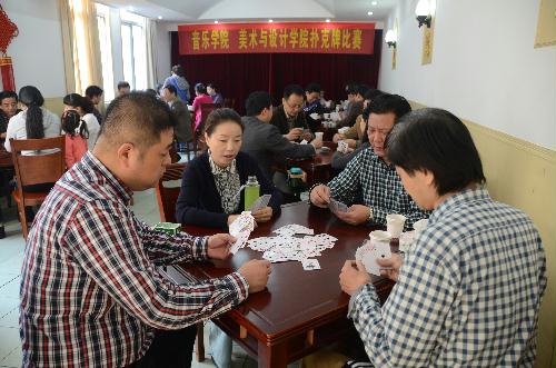 10月25日,在学校举行校运会期间,我院与新分设的音乐学院工会精心组织了一场教职工扑克牌(掼蛋)联谊赛。