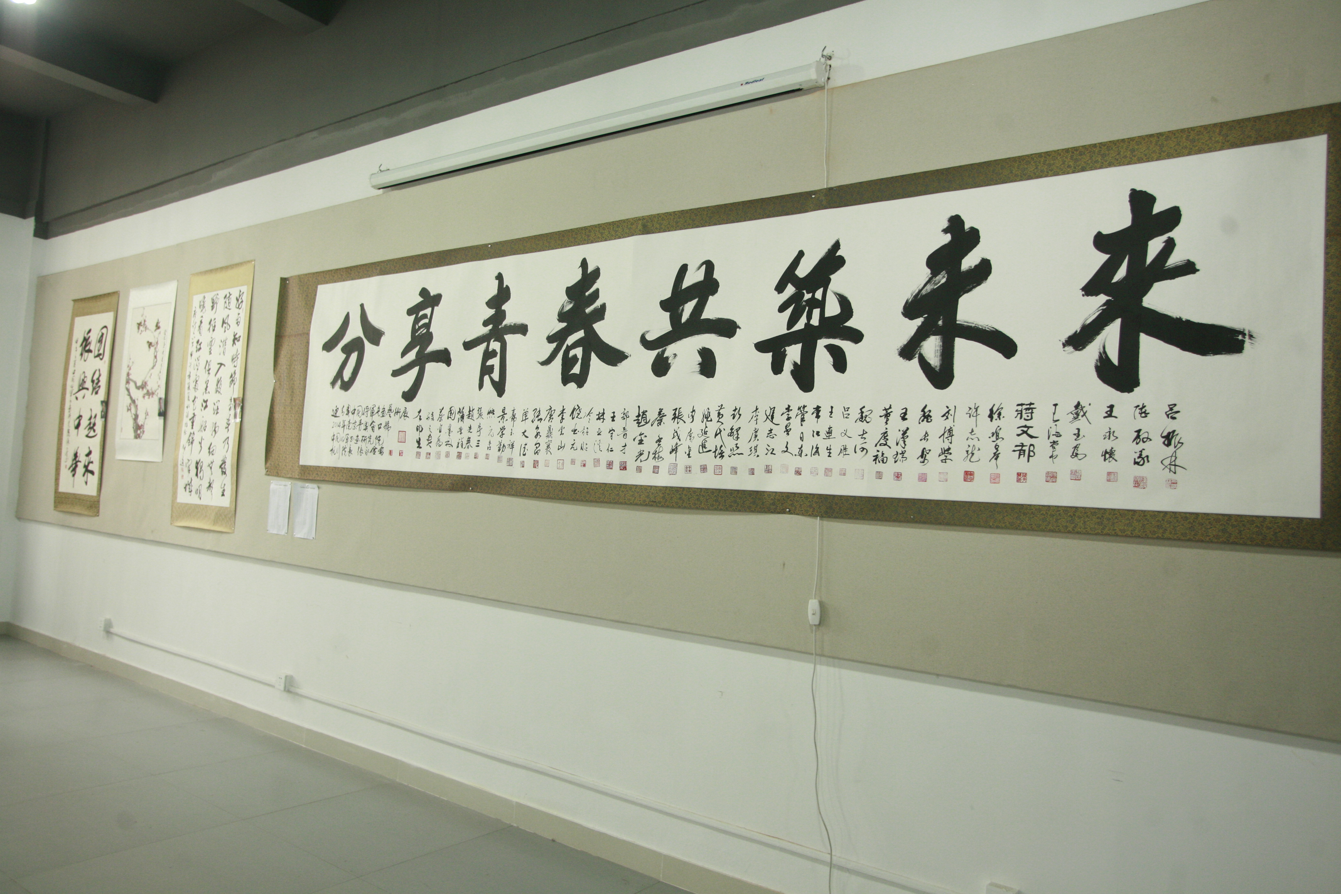 据悉,今年8月中旬到10月初,“中国将军书画艺术展”曾在南京奥体中心展出,为青奥会宣传、喝彩。此次,为期6天的将军书画展走进扬大校园,是将军与我校书法爱好者进行交流互动的一种方式。通过展览,进一步增进了军政军民友谊,促进了双拥工作,也为广大书法爱好者学习书法提供了良好的借鉴。