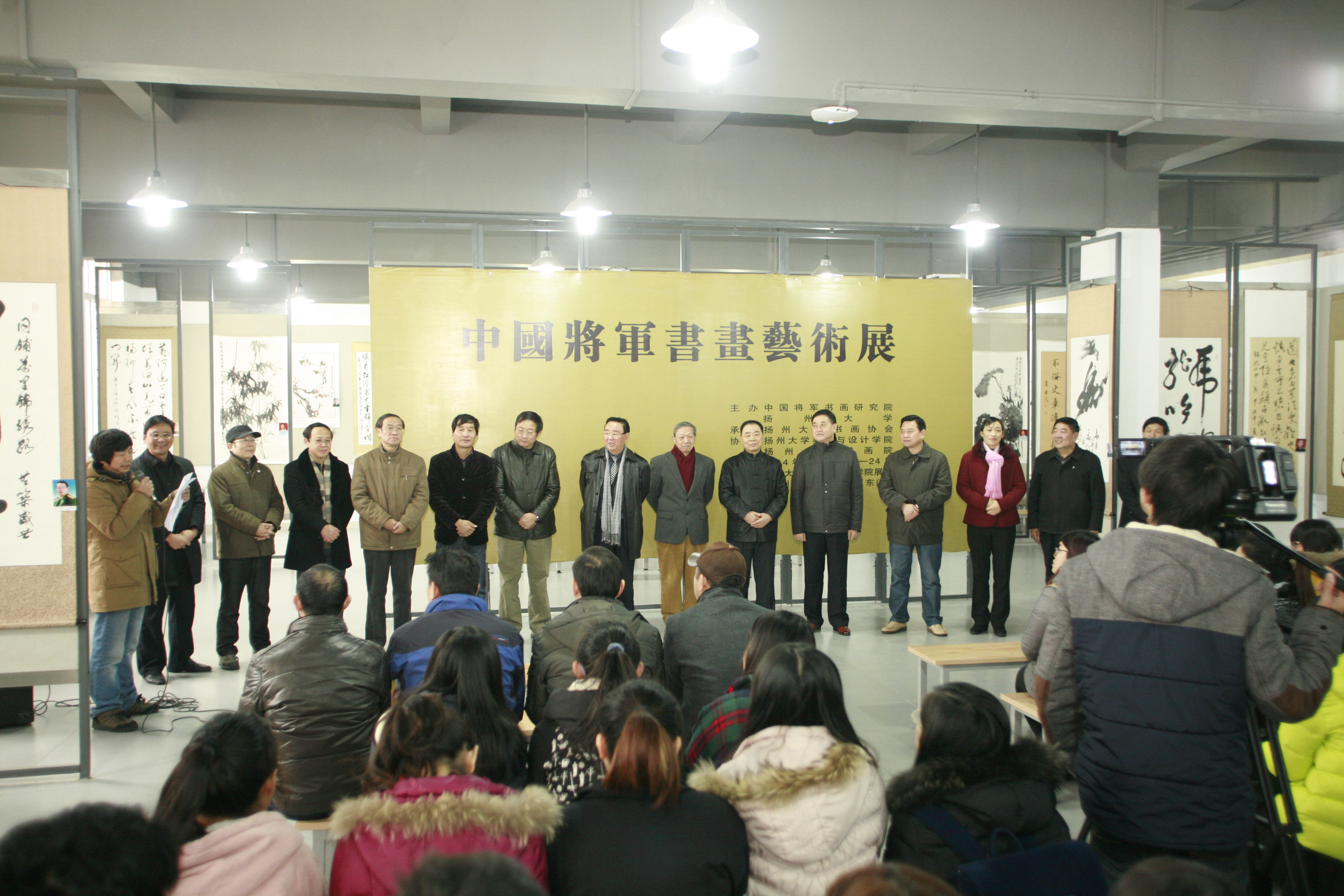 12月19日上午,由我校与中国将军书画研究院联合主办,校书画协会承办,我院与扬州皇宫书画院协办的“中国将军书画艺术展”,在院展览中心开幕。校党委副书记、纪委书记刘延庆出席开幕式并致辞。此次书画展共展出60位将军的73幅书画作品,大多出自具有中国书法家(美术家)协会或省级书协(美协)会员资质的将军之手,是他们在繁忙的军务之余或退休之后自学书法、追求艺术的成果。作品古朴大方,雄健有力,典雅和谐,灵动流畅,章法上千姿百态,神采飞扬,笔墨之间凸显了他们丰富的人生阅历和独特的军人气质,闪耀着将军群体的文化特色和人格魅力。