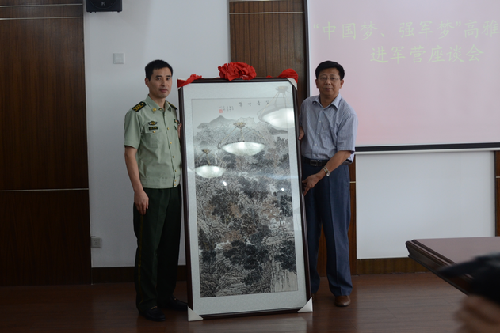 7月12日,校党委常委、副校长洪涛携校团委、保卫处及美术与设计学院负责同志,与扬州市消防支队陈立新等消防支队领导就进一步推进军、校双方的合作交流座谈。双方对目前业已取得的合作成果表示满意,对深入推进双方的深度合作充满信心。座谈会上,洪涛副校长代表学校向消防支队赠送了象征双方友谊源远流长的书画作品《青山翠柳》。