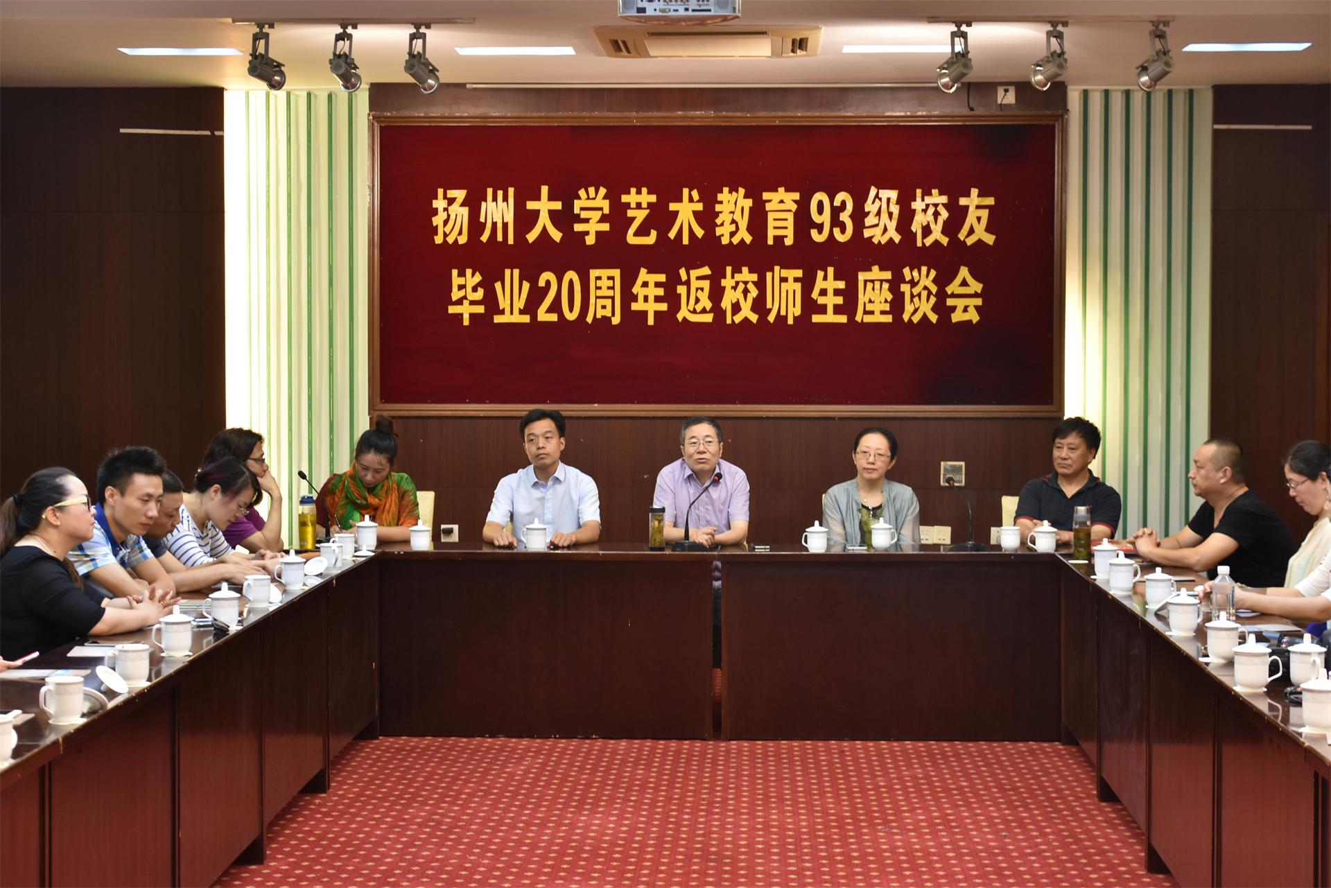 8月14日上午,校友们在参观瘦西湖校区后,齐聚虹桥专家楼会议室举行座谈会。美术与设计学院院长贺万里、党委副书记陆江峰、副院长李玫、原艺术学院党委书记许晨有及教师代表曹生龙、张延凯、周新叶、刘智勇出席座谈。