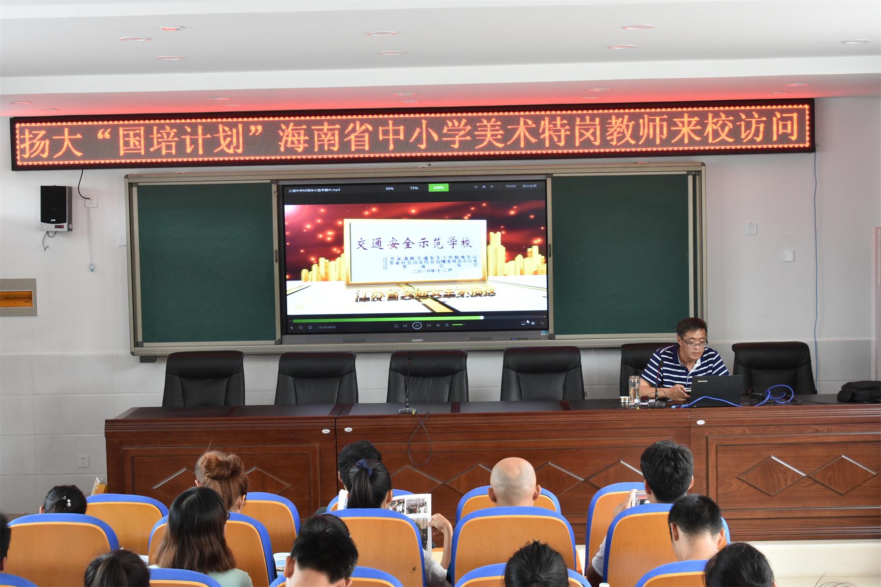 8月2日下午,“国培计划(2016)”——海南省中小学美术特岗教师访名校培训班全体学员来到邗江区公道中学实践观摩。该校校长沈文涛参加活动。