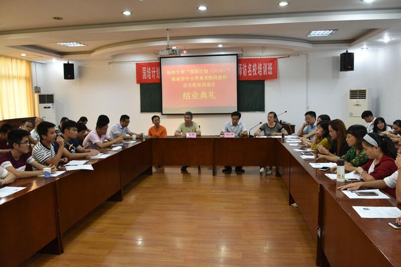 2017年8月5日下午,海南省中小学美术特岗教师访名校培训班培训心得交流会暨结业典礼在我院举行。学院党委书记马雷出席并讲话,党委副书记陆江峰宣读培训班优秀学员名单。