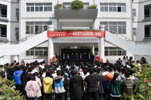 2018年4月20日上午十点,我校江苏艺术基金2017年度资助项目“非遗文化”进乡村——扬州漆艺作品巡回展(第三站)在溱潼古镇溱潼中学隆重开幕!当地居民、溱潼中学部分师生、扬州大学美术与设计学院部分硕士生等近两百人观看了展览。展览地点选择在溱潼中学,是为了面向青年人进行普及教育,有利于这门优秀文化遗产的传承与发展;面向农村集镇地区进行传播宣传,既丰富城镇居民的文化生活,又真正起到传播与交流的作用。