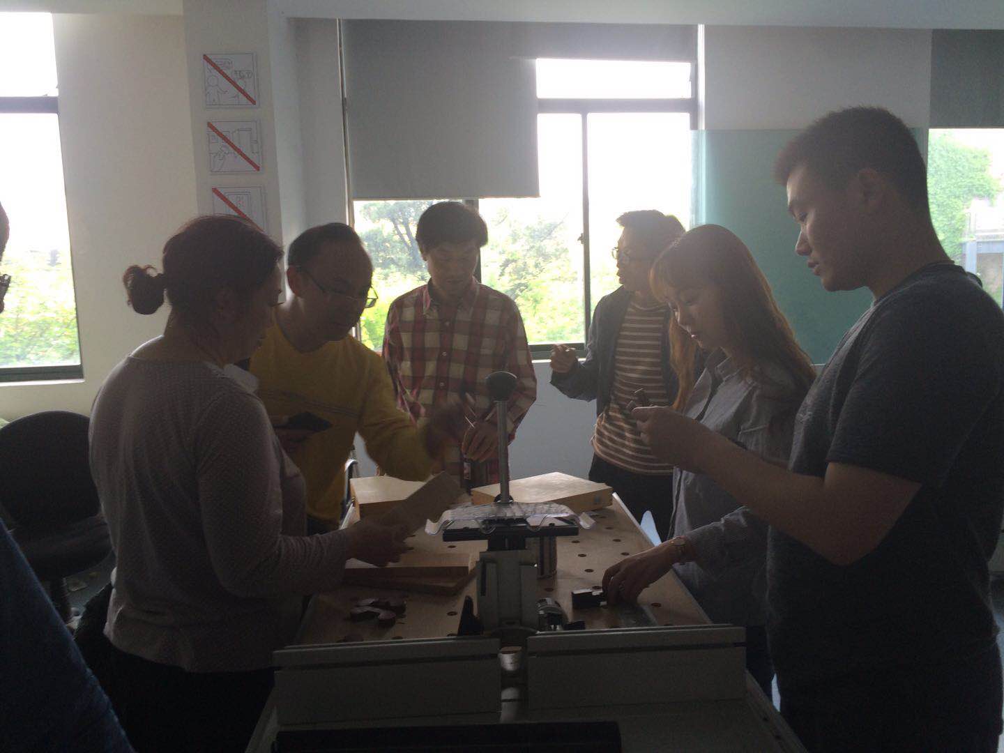 第一分队调研了江南大学设计学院工业设计、产品设计、视觉传达、环境设计、公共艺术、美术学(师范)、整合创新设计实验班共七个专业,参观了计算机房、摄影工作室、丝网印工作室、陶艺工作室等一批用于实践教学和产品设计的实验(践)室。
