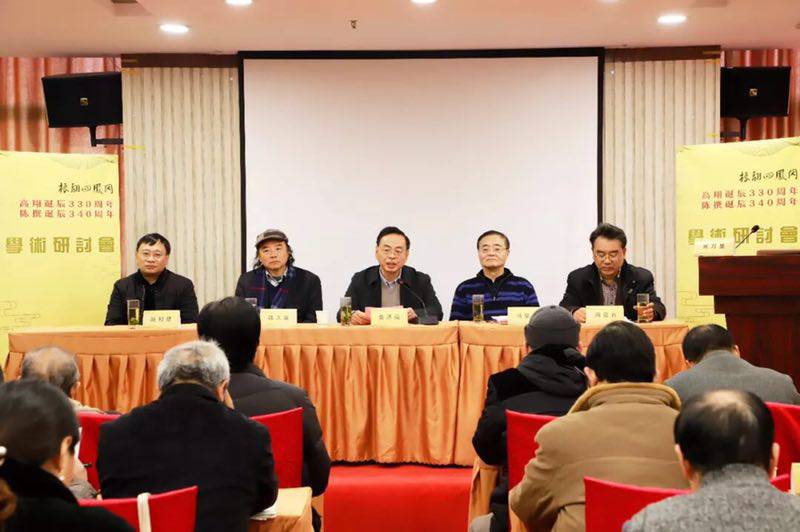 振翮四凤冈——高翔诞辰330周年陈撰诞辰340周年学术研讨会由扬州大学主办,扬州大学美术与设计学院、扬州市文物局承办,扬州八怪纪念馆、扬州大学八怪研究所、清代扬州画派研究会协办。本次研讨会由扬州大学美术学院院长贺万里教授主持,扬州大学副校长俞洪亮教授致辞。全国著名清代扬州八怪研究专家、学者都携带自己的研究成果在本次研讨会上展示,许多论文立意新颖,研究视角独特。在这次学术研讨会上,专家、学者们除了踊跃宣讲了自己的论文外,不时地对他人的论文自己认为有质疑的观点立刻就展开讨论,大家畅所欲言呈现出本次学术研讨会学术治学风气严谨之景象!研讨会现场充满着对扬州八怪高翔、陈撰的敬仰和对他们的深入研究与探讨,只为求证自己研究的论文准确性。