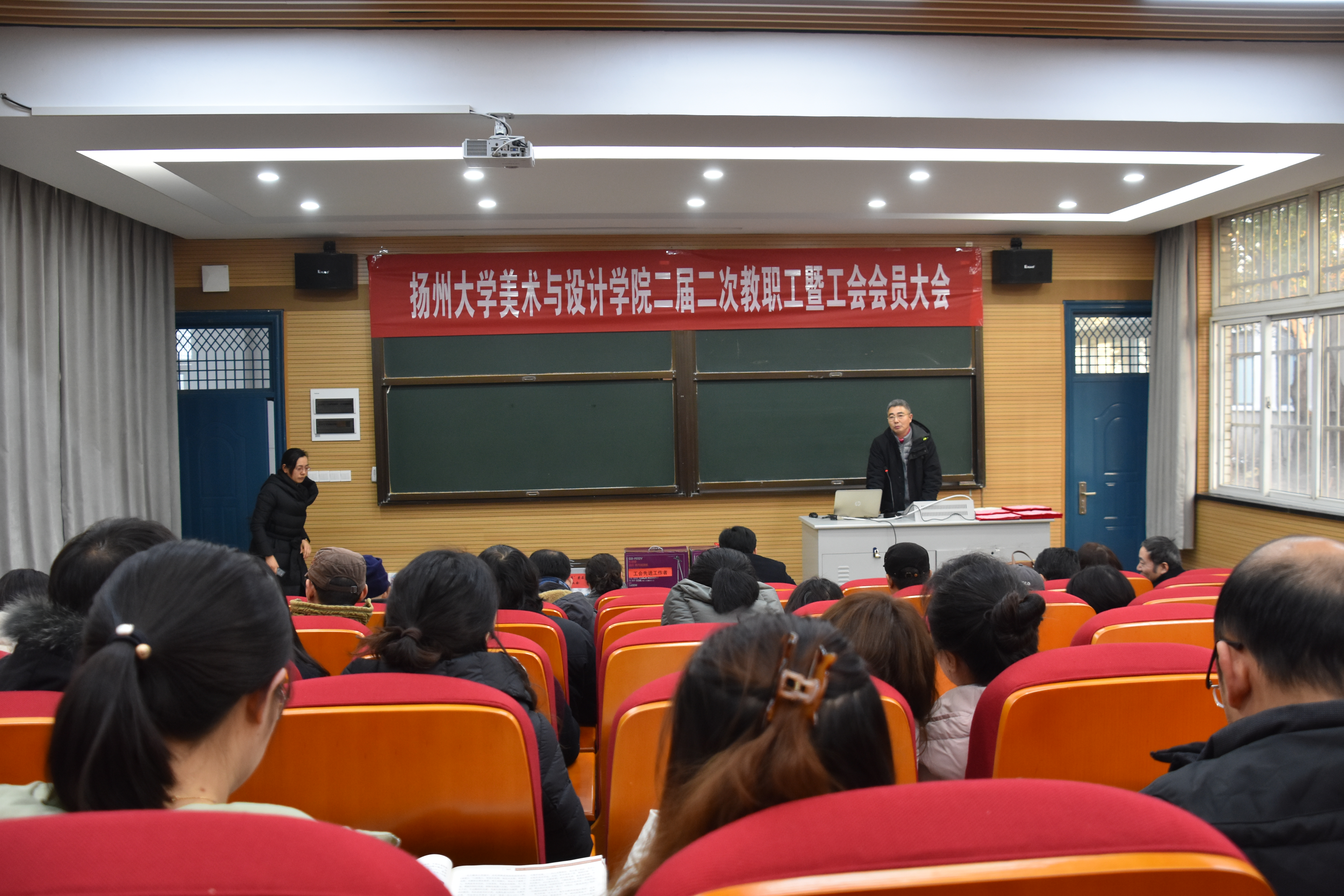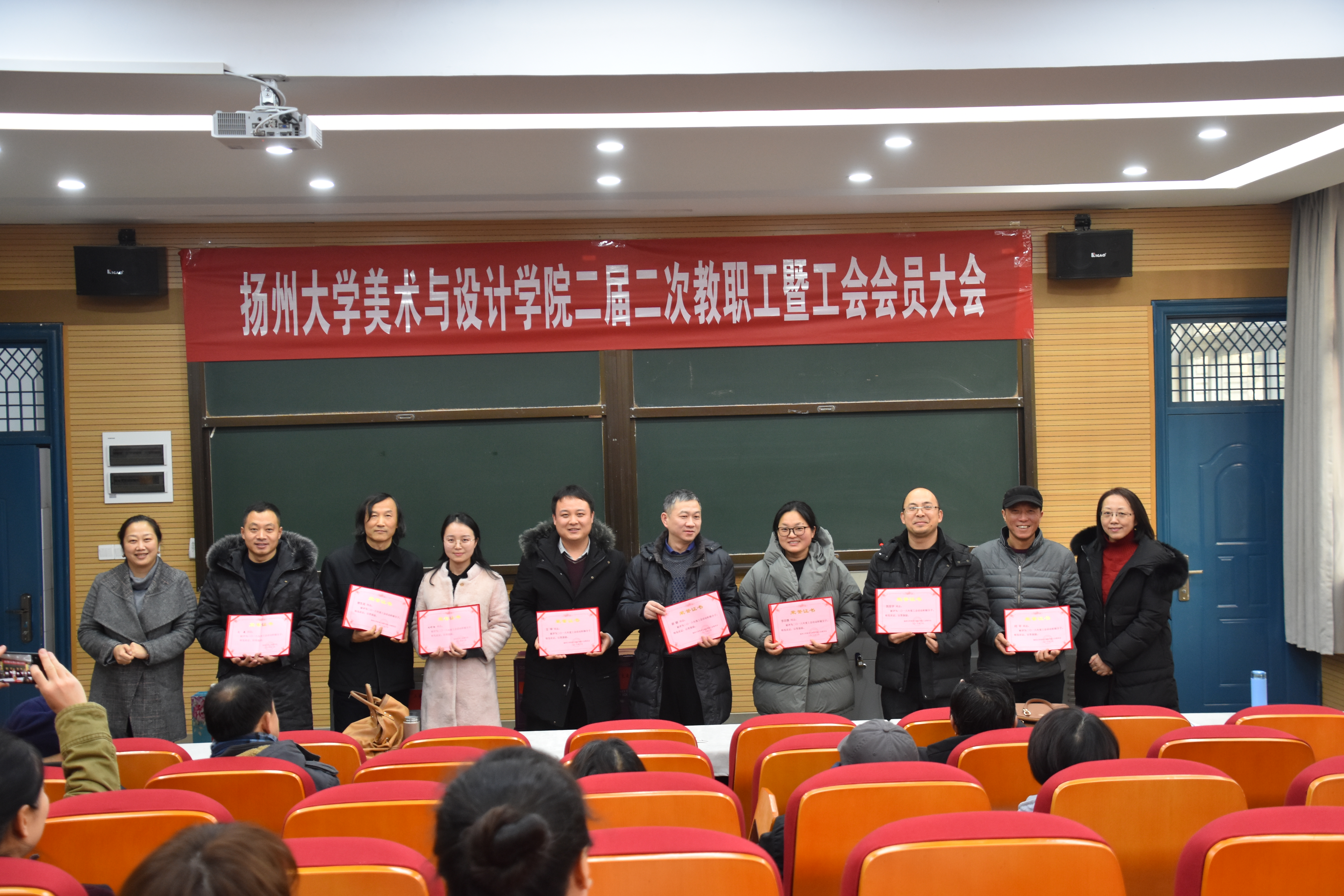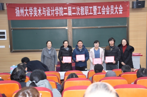 2019年1月18日下午,美术与设计学院在江阳路南校区新建成的院学术报告厅召开了院二届二次教职工会暨工会会员大会。大会听取了院长贺万里关于学院年度工作的情况报告、院工会主席庞咏兰所作的院工会工作报告和经费使用情况说明。会议还举行了校院两级工会年度表彰颁奖仪式。