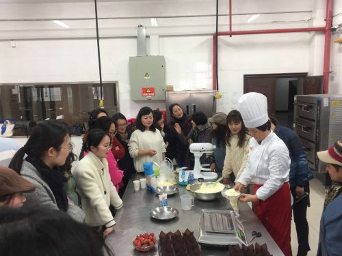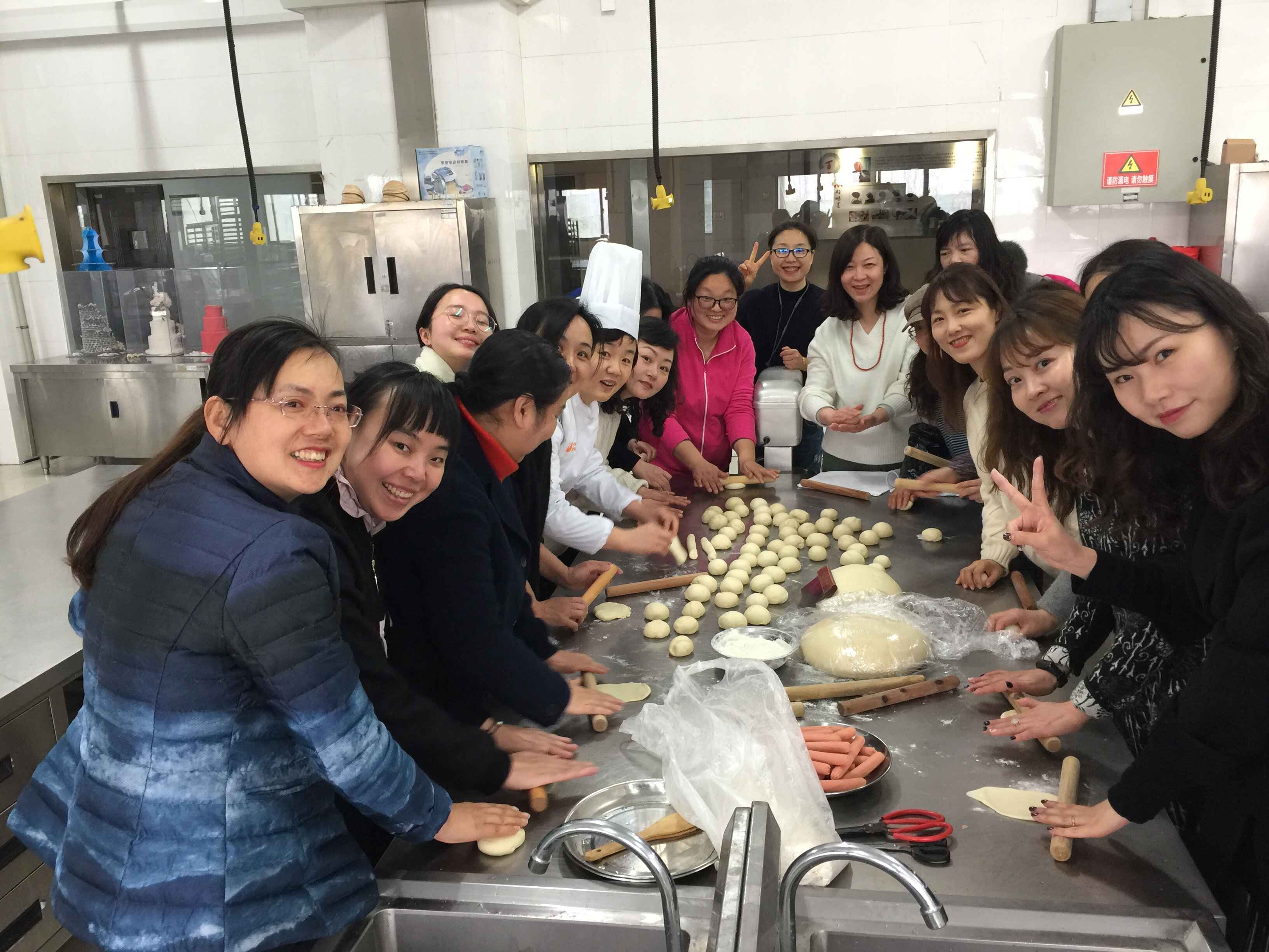2019年3月13日下午,美术与设计学院工会组织全院女教工赴扬子津校区,在旅游烹饪学院专家详细讲解示范和认真悉心指导下,兴致勃勃地学习体验了面包和蛋糕的制作烘焙全过程。大家撸起袖子,跟着老师一步一步认真学习,动手操作,心灵手巧,创意多多,经过2个多小时的制作体验,做成了形色各异、口味甚佳的西点成品。女同胞们品尝到劳动带来的快乐和满足,度过了一个令人难忘的三八国际劳动妇女节。