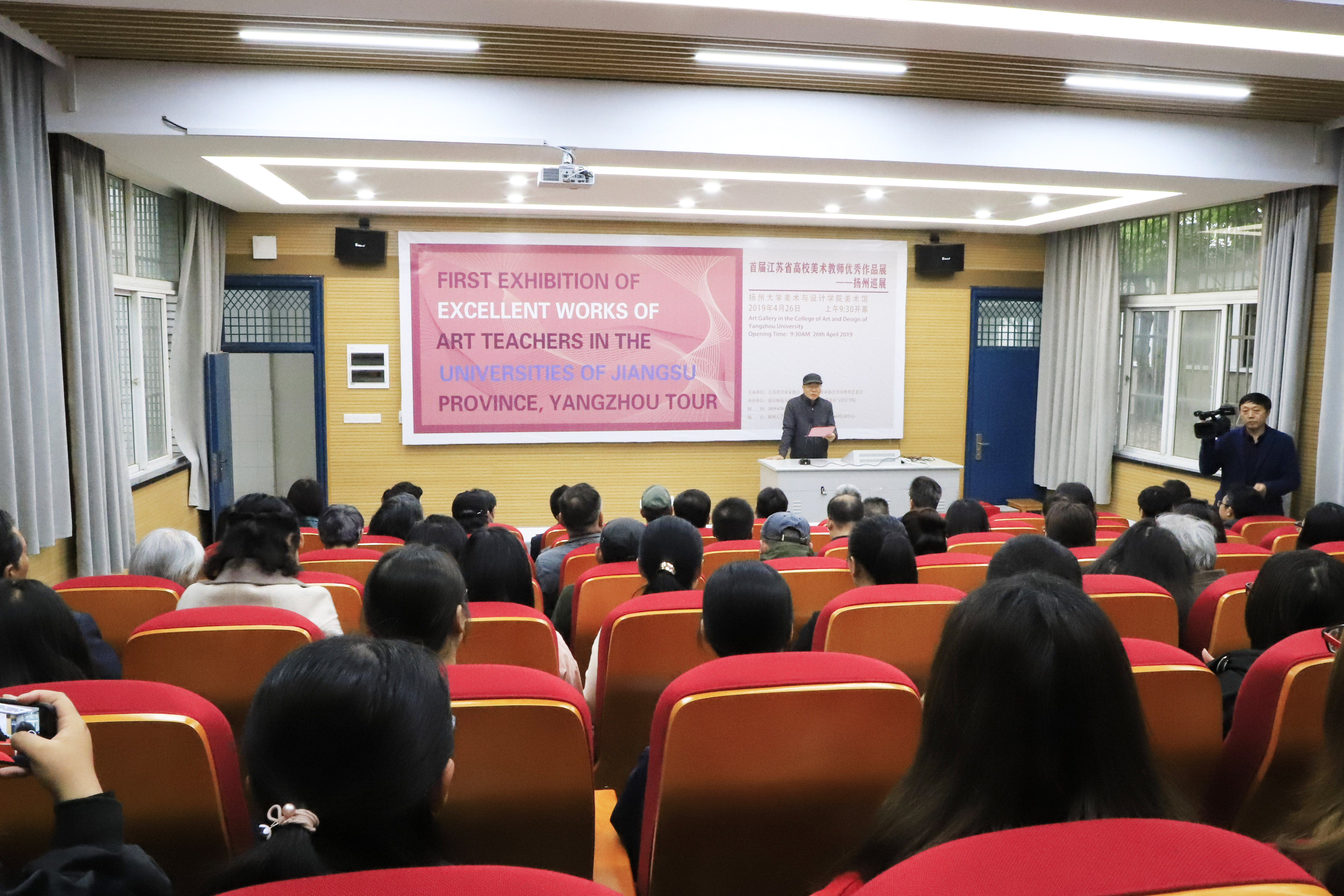 4月26日上午9点半,首届江苏省高校美术教师优秀作品展扬州巡展在扬州大学美术与设计学院开幕。
