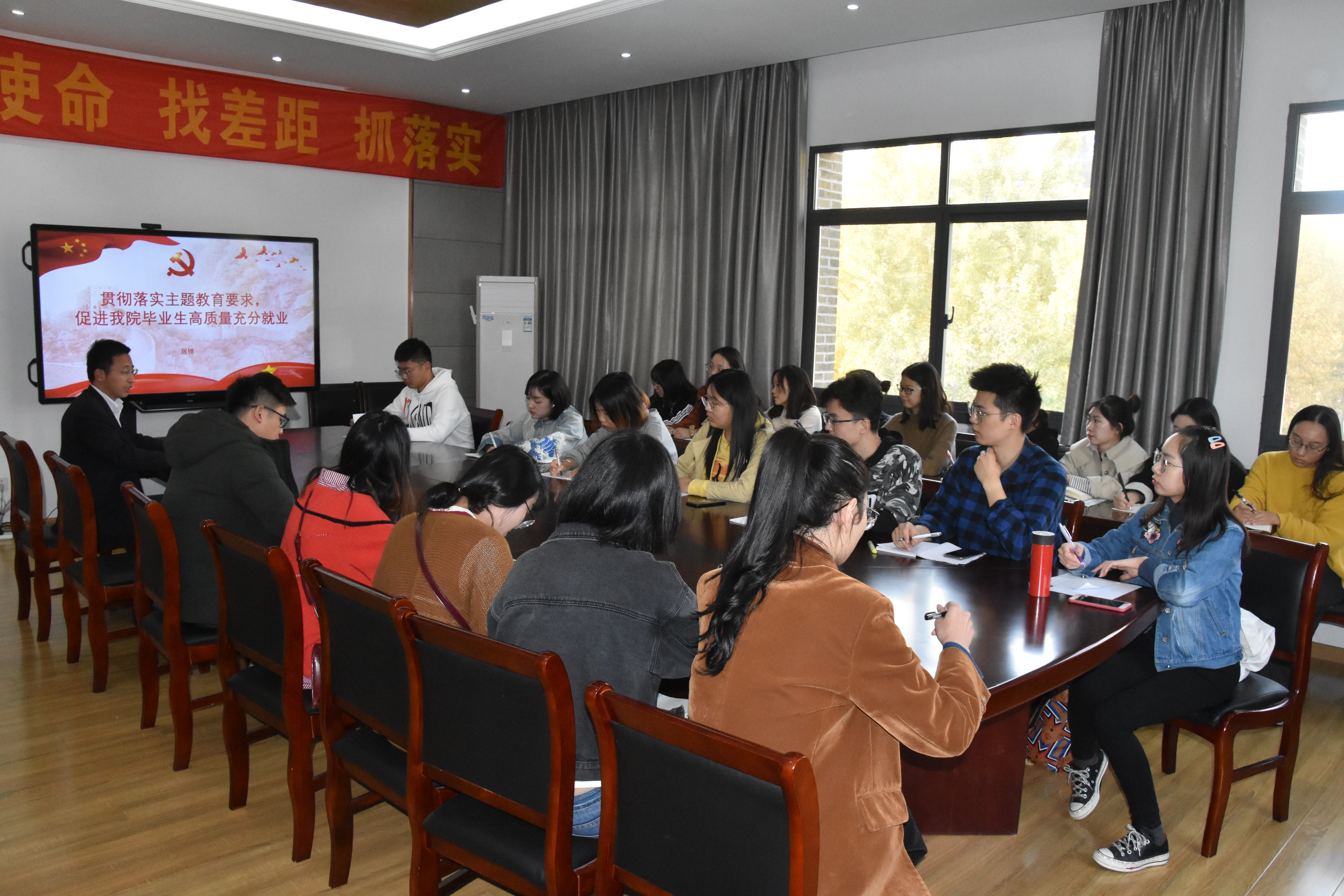 为深入学习习近平新时代中国特色社会主义思想,进一步增强党员责任意识和奉献精神,10月30日下午,我院学生第二党支部在302会议室开展了“贯彻落实主题教育要求,促进我院毕业生高质量充分就业”主题党课教育活动,院党委副书记周锋主讲。