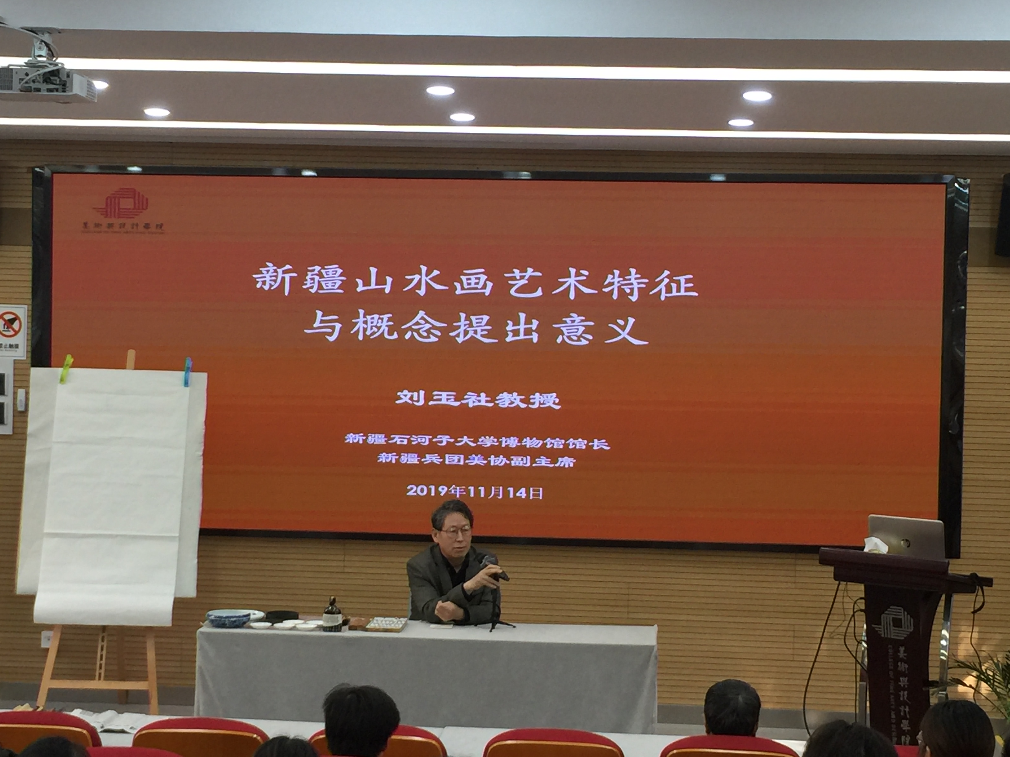 11月14日下午,新疆石河子大学博物馆馆长、新疆兵团美协副主席刘玉社教授受邀在我院报告厅进行了题为“新疆山水画艺术特征与概念提出意义”的讲座。