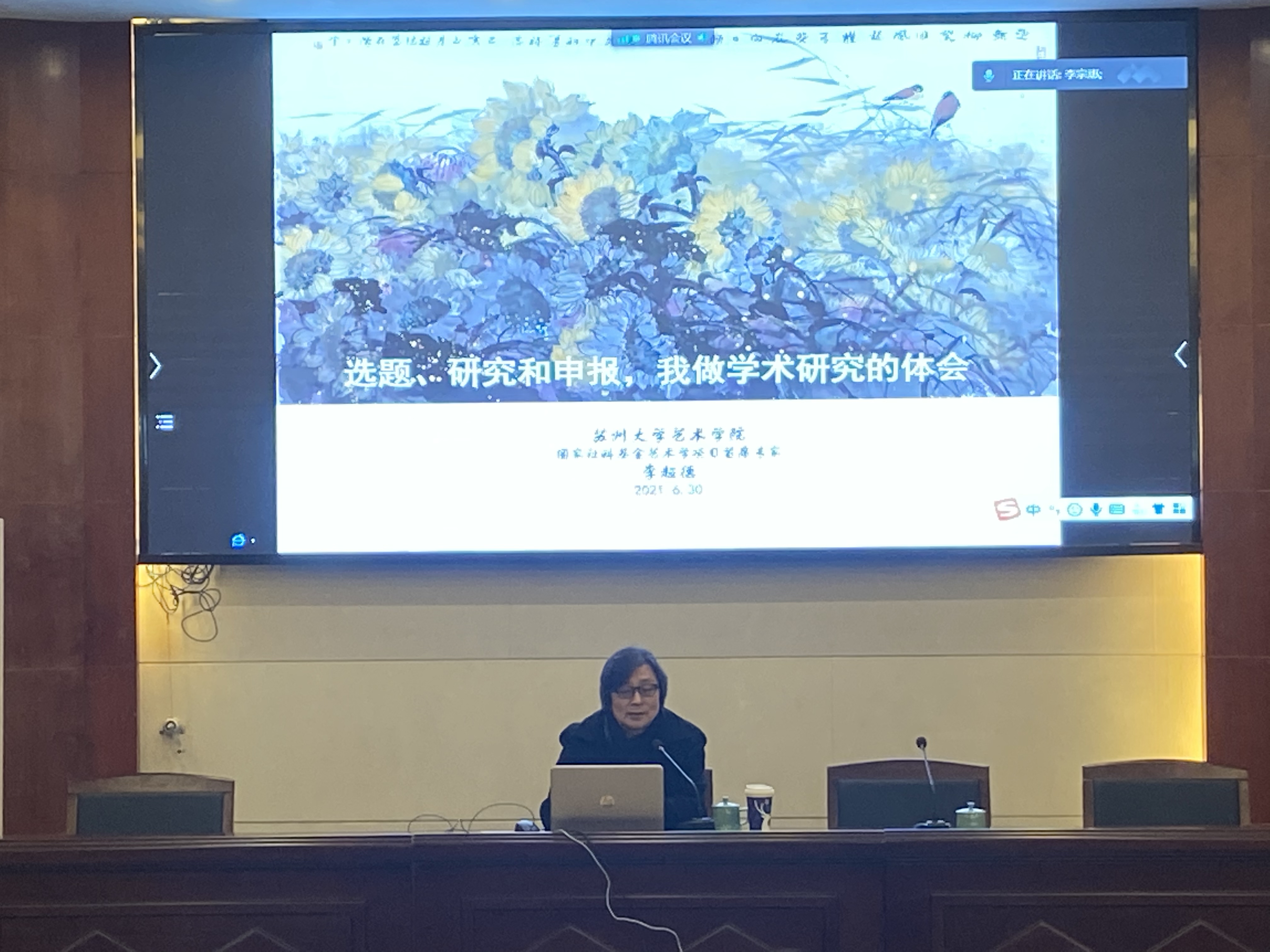 12月21日上午,扬州大学美术与设计学院“美苑大讲堂”第七期在扬州大学路南校区水利报告厅隆重举行。李超德教授应邀做了题为“选题、申报、研究,我做学术研究的体会”的学术报告,报告由学院院长李玫教授主持,美术学院全体教师和研究生、新闻与传媒学院部分教师参加了本次活动。
