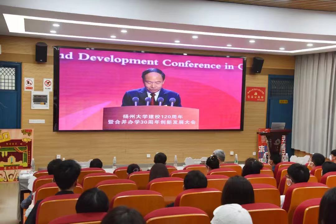 5月19日上午,扬州大学建校120周年暨合并办学30周年创新发展大会成功举办,美院分会场全程直播,全体院领导、部分教师和校友代表以及全体学生线上线下同时参会。 在分会场,师生戴着校庆主题口罩,自发举起以“重温百廿校史,传承扬大精神”、“百廿扬大,通州溯源”、“坚苦自立,砥砺奋进”等海报,祝福母校生日快乐!