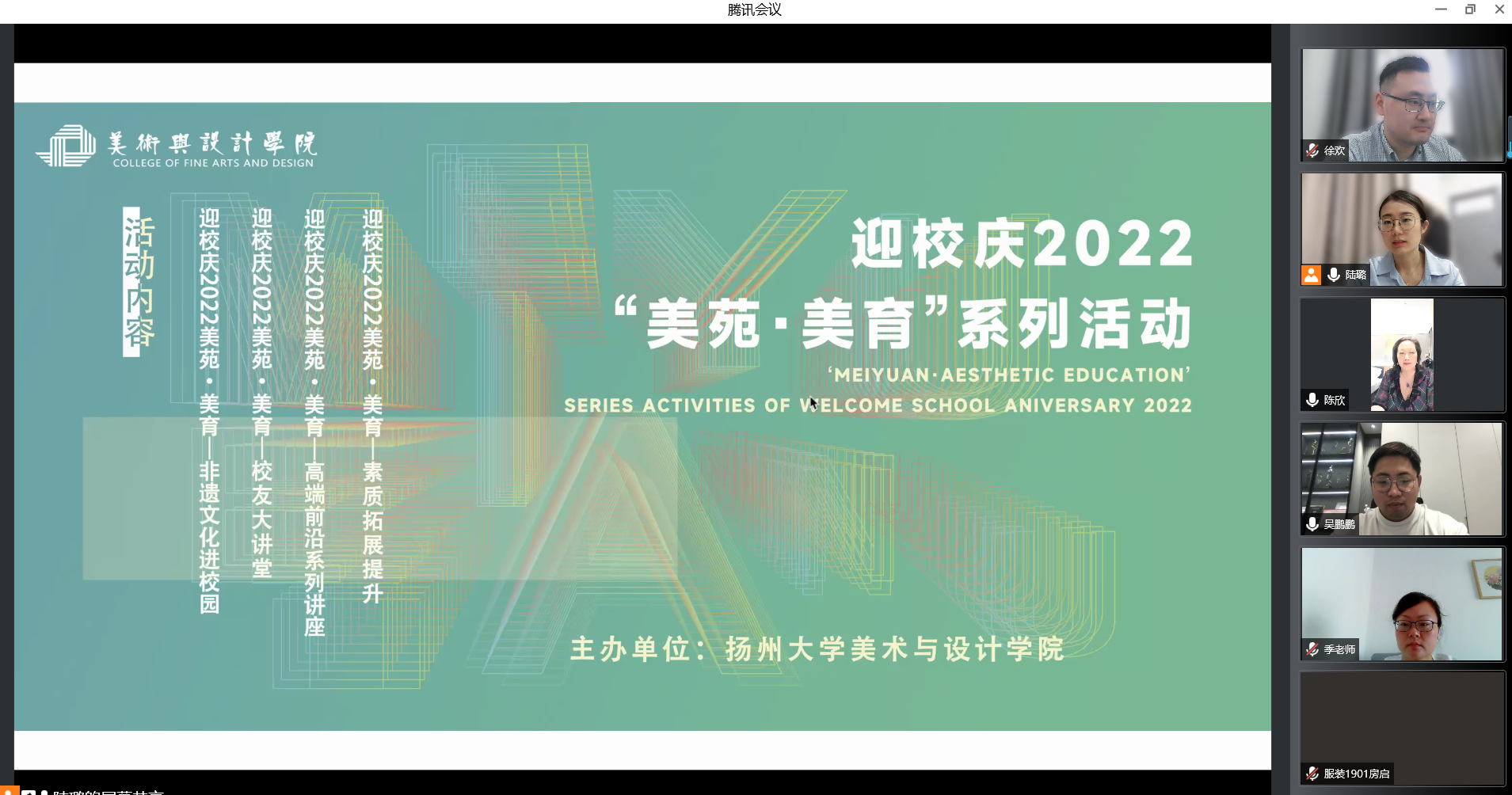 2022年5月20日,扬州大学美术与设计学院“迎校庆2022‘美苑·美育’系列活动”之“校友大讲堂”第八场讲座在美术学院以线上方式展开,本次讲座邀请了奇妙能力时装设计扬州有限公司联合创始人吴鹏鹏,讲座由副院长陈欣老师主持。