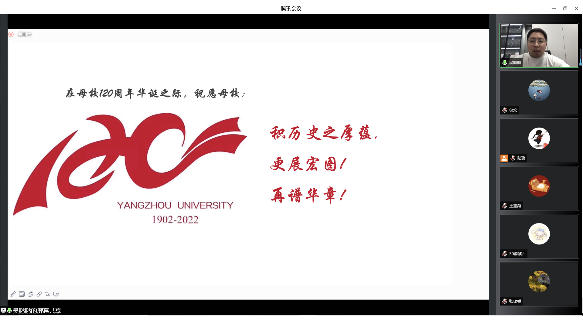 最后,陈欣老师代表美院师生对吴鹏鹏表示谢意,并总结了近期美院举办校友讲座系列活动的积极影响,感谢吴鹏鹏以“美苑·美育”活动向扬州大学一百二十周年校庆献礼。