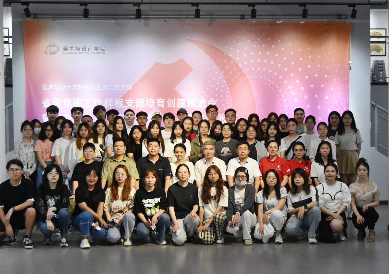 2022年6月19日下午,美术与设计学院研究生第二党支部组织开展了省级党建工作样板支部培育创建推进会暨“党建带团建”结对仪式。我院党委书记马雷同志、副书记周锋同志、组织员史逸君同志、院团委书记杨千里同志、环设2003班班主任郝琳琳同志以及其他兄弟党支部书记、支委和研究生第二党支部全体党员、环设2003团支部全体团员参加了此次活动。