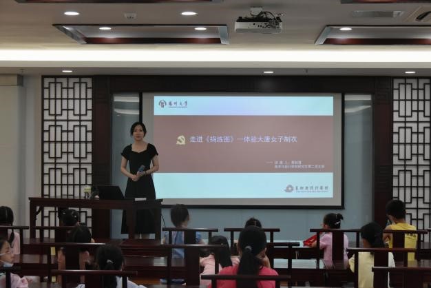2022年7月17日上午,我院研究生第二党支部联合扬州市少儿图书馆开展“传统美育”文化课堂,邀请亲子家庭聆听传统美术作品的鉴赏。