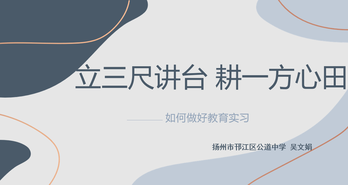 为了让同学们对教育实习有更深入的了解,2022年9月16日上午9:00,我院邀请扬州市公道中学美术教研主任、扬州市高中美术学科带头人吴文娟老师为我们带来“立三尺讲台,耕一方心田”教育实习讲座,由赵宝珊老师主持。