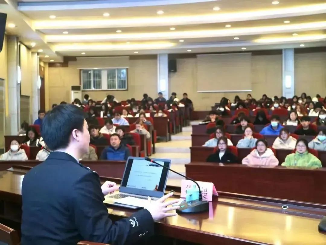徐超警官就“提高警惕意识,谨防网络诈骗”这一主题对我院学生开展了生动的反诈宣讲。