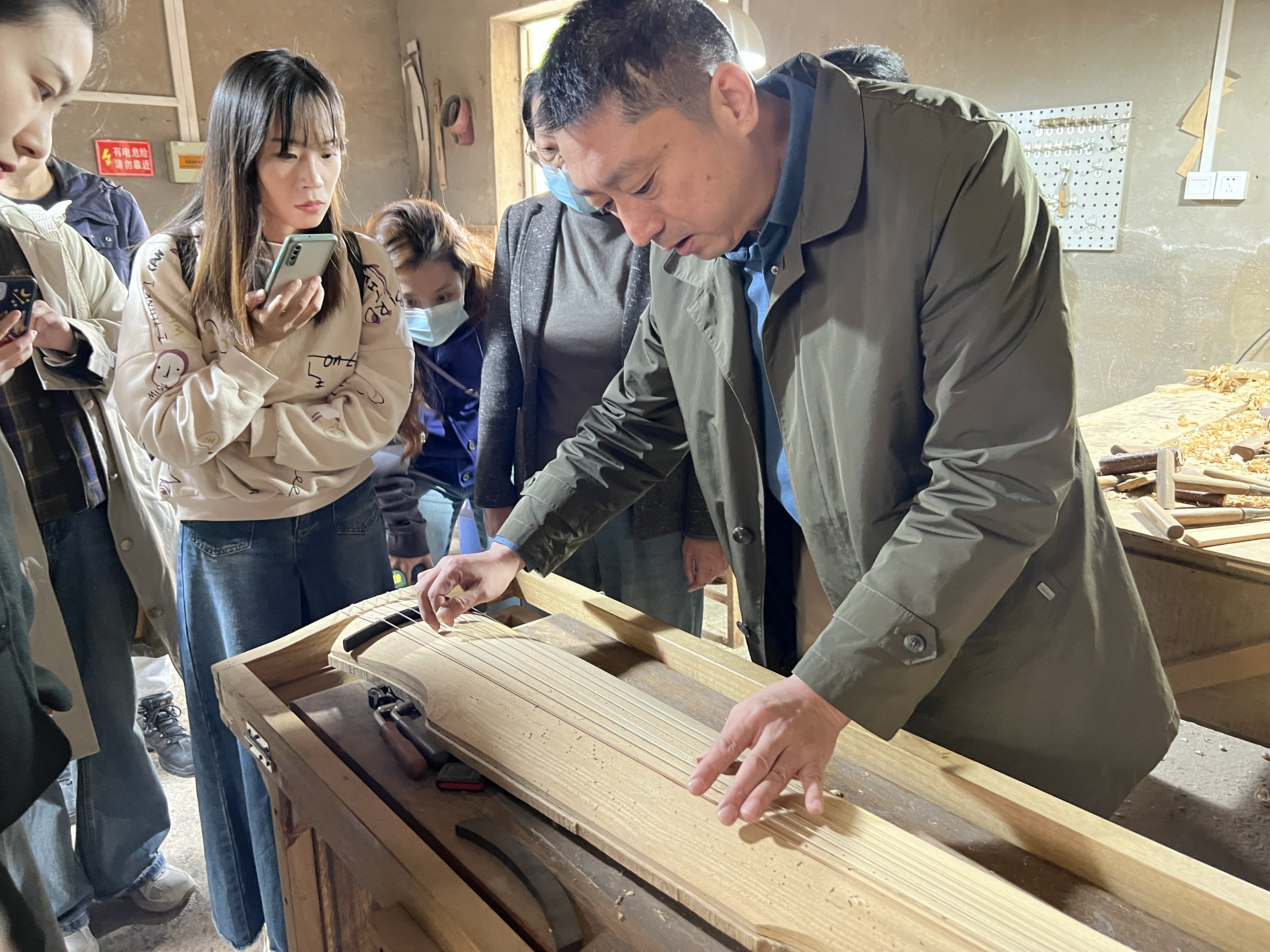 仪式结束后,卢荣先生带领我院师生参观讲解了古琴的具体制作步骤。参观过程中,同学们深感震撼,在感叹工匠精神之余,也加深了对实习实训意义的理解。